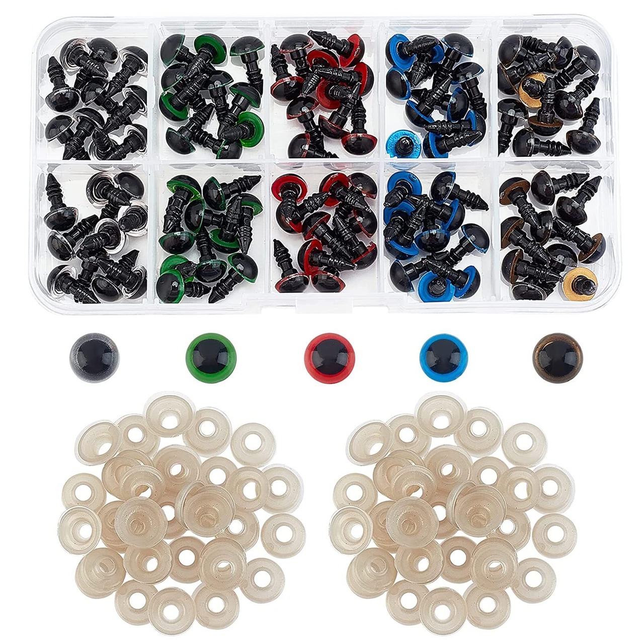 SUPERFINDINGS 5色 差し目 100個入り さし目 ぬいぐるみ目 8mm 動物 カラフルなプラスチック製 安全目 テディベア目 クマのため カラフル 丸いクラフト 人形の目 ワッシャー付き 犬 人形制作キット