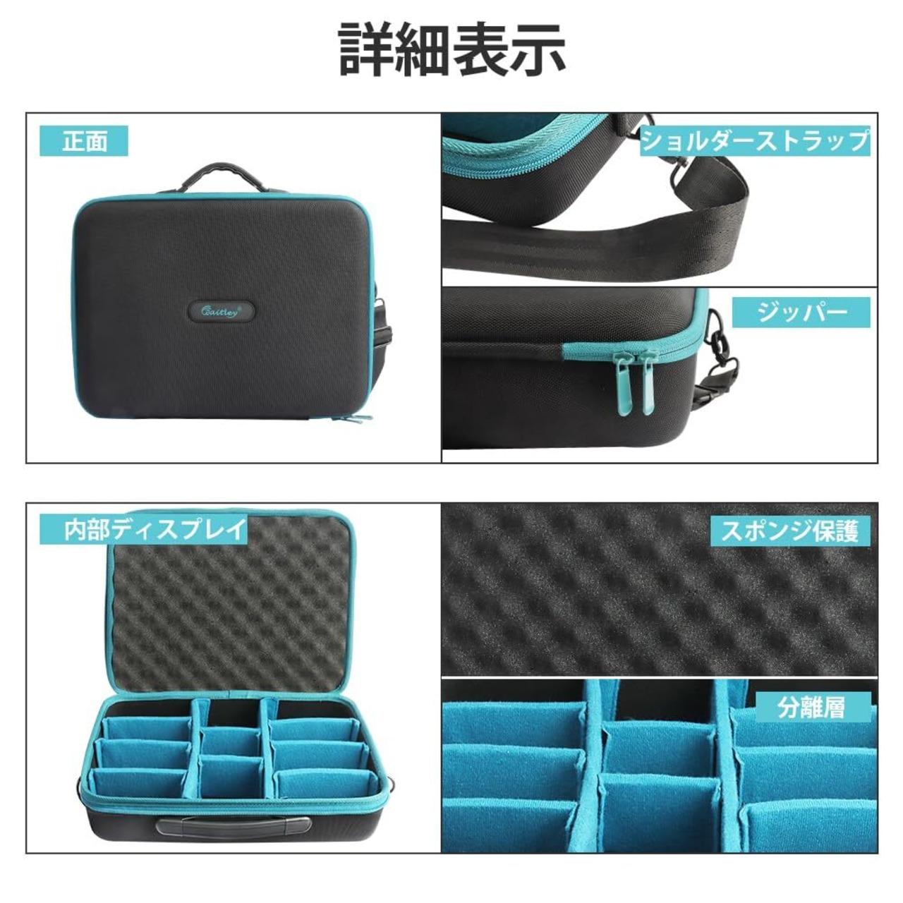 「シンプルで洗練されたデザイン」:バッテリーや工具を安全に収納できる多機能収納ケースです。黒と青のスタイリッシュな配色で、シンプルかつ美しいデザイン。ダブルファスナー採用で、開閉がスムーズで便利です。