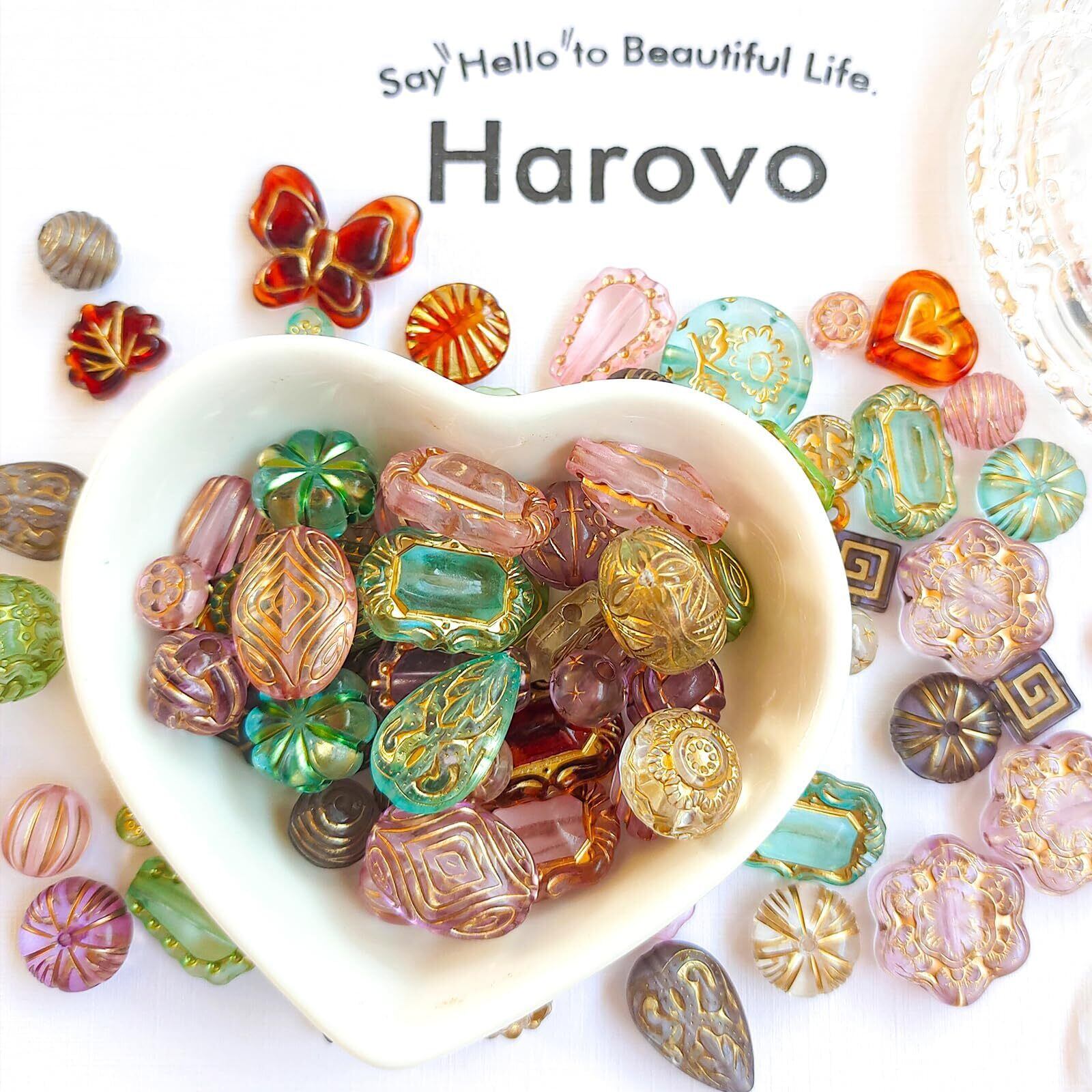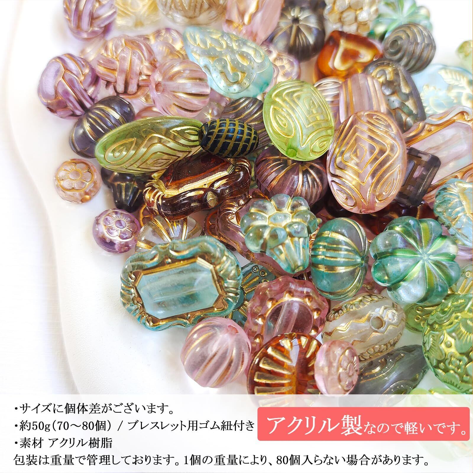 Harovo ビーズ アンティーク ミックス 50g入り デコビーズ パーツ 透かしビーズ アクリルビーズ アクセサリー レトロ 手芸 ブレスレット ハンドメイド 材料 初心者向け ゴム紐付き(クリアミックス)