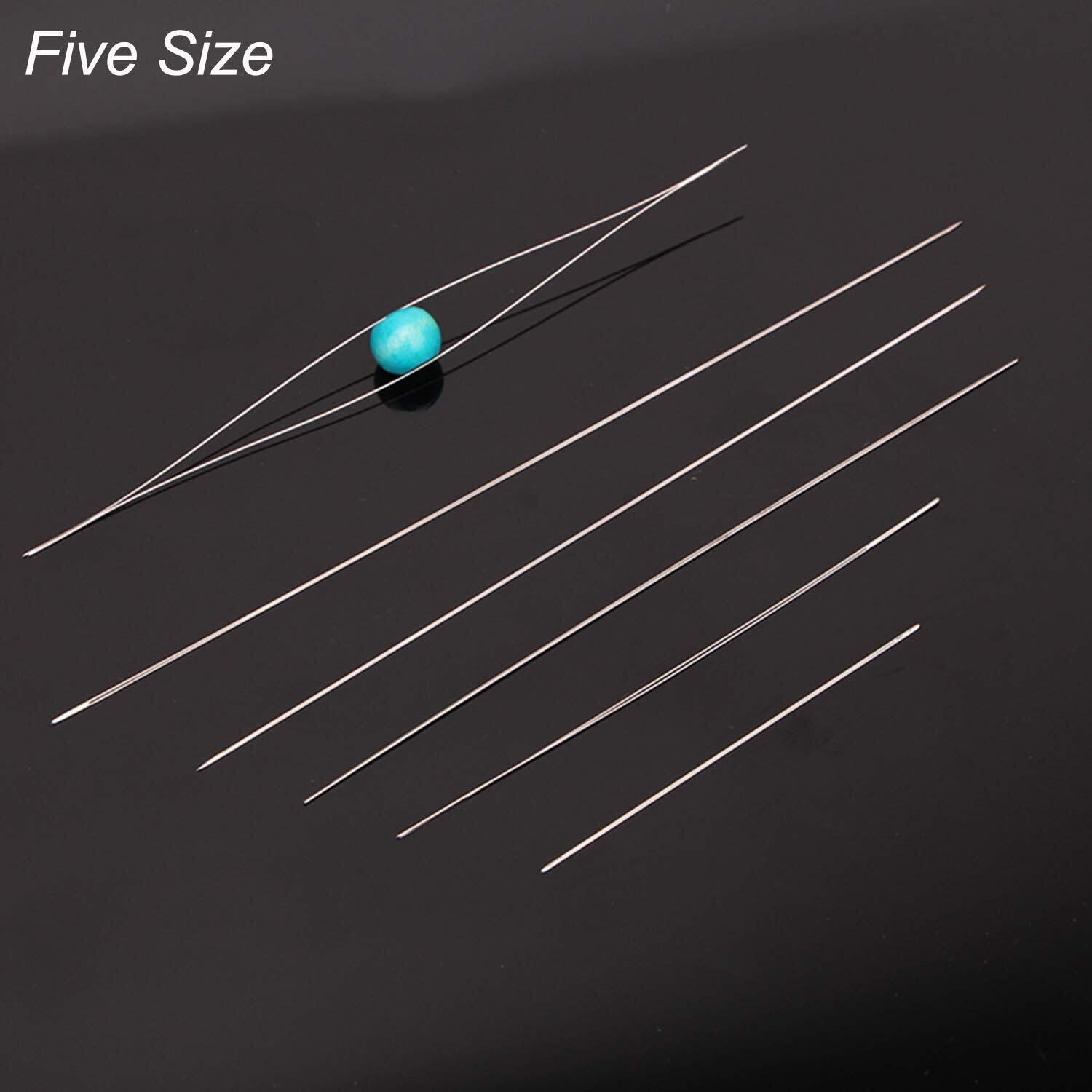 Dennty 5サイズ ビーズ 針 極細 糸通し ビーズ通し 超極細針 ビーズ刺しゅう針 ビーズ織り針 手作り DIY 縫製 14本入り 手芸用品 工具 パーツ ハンドメイド アクセサリー制作 収納ケース付き
