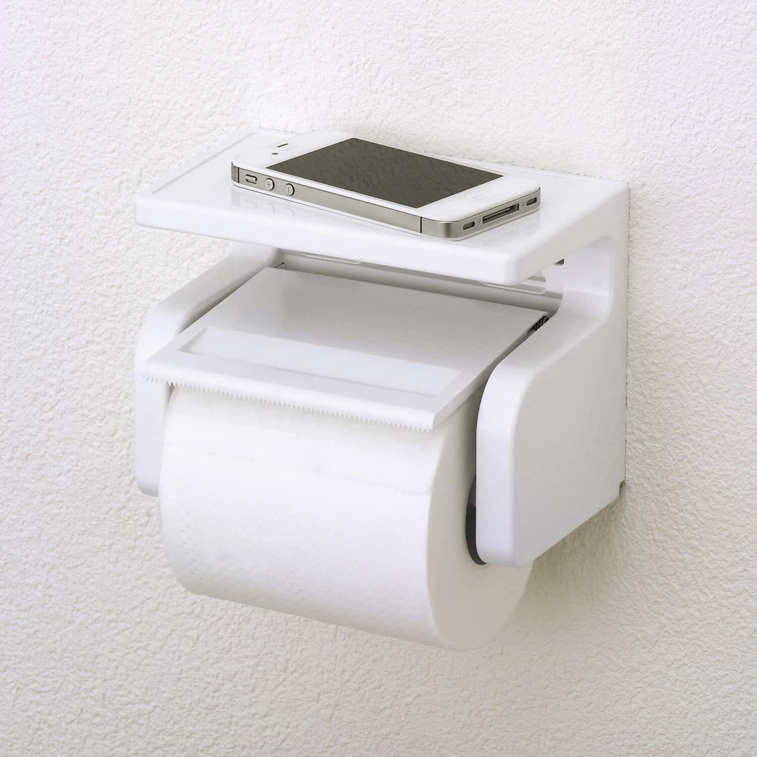 携帯や小物が置ける便利な棚付きのペーパーホルダーです。