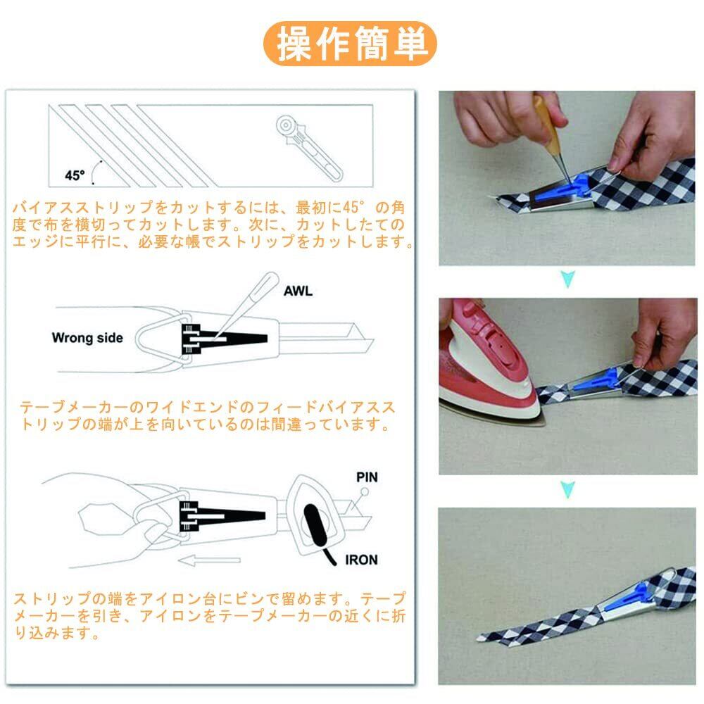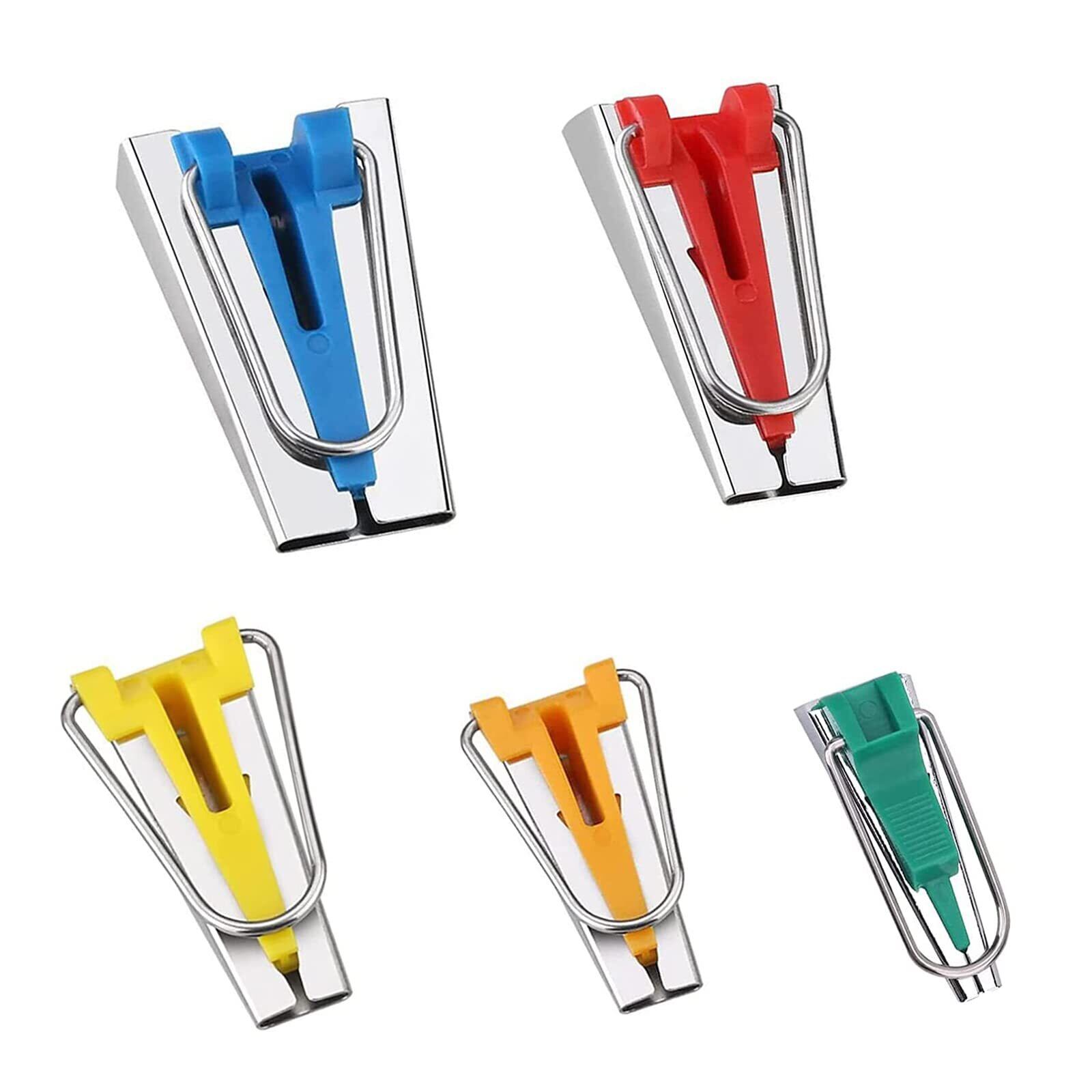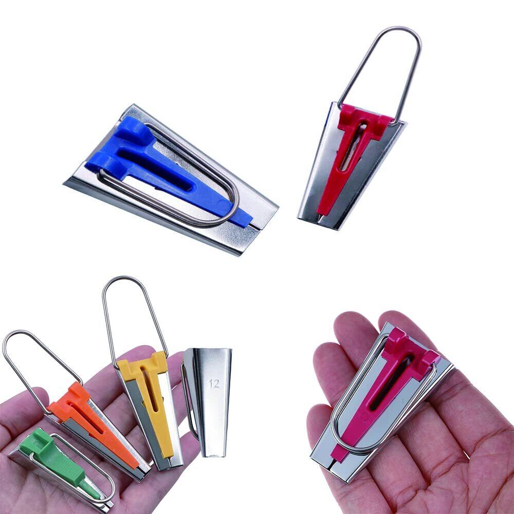 【新春セール】DFsucces バイアステープ かんたん作成 4サイズセット テープ ミシン アタッチメント 簡単手作り 袖ぐり 衿ぐりのパイピング始末 仮止めクリップ 手芸 パイピング (5個セット) | allstore3