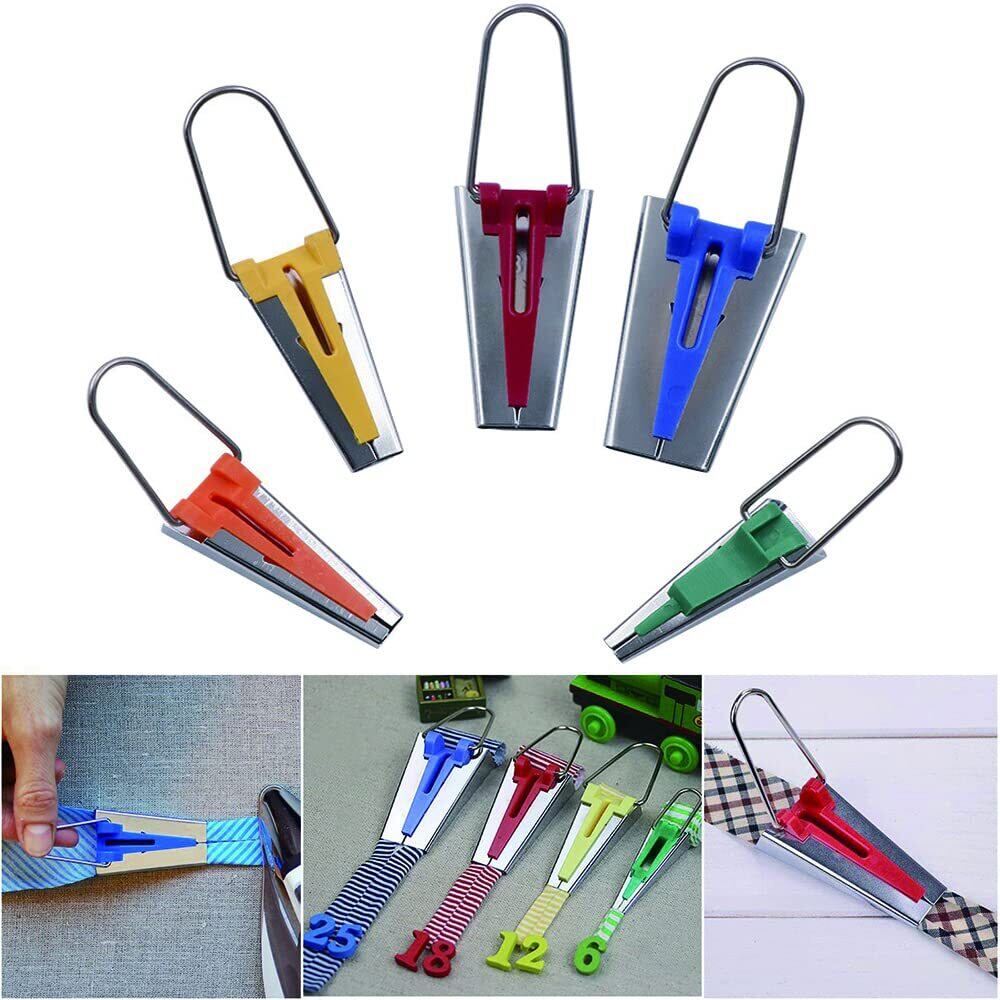 DFsucces バイアステープ かんたん作成 4サイズセット テープ ミシン アタッチメント 簡単手作り 袖ぐり 衿ぐりのパイピング始末 仮止めクリップ 手芸 パイピング (5個セット)