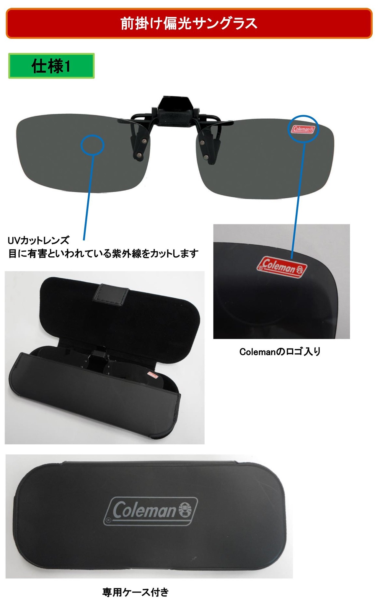 仕様:UVカット、偏光レンズ、クリップ式