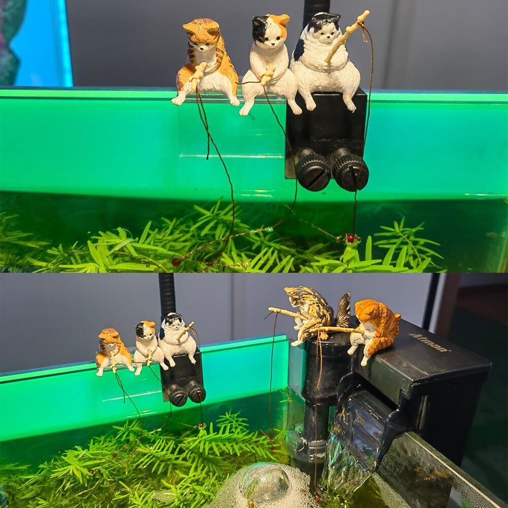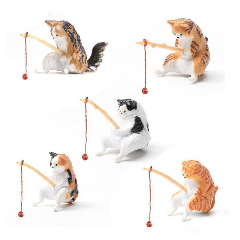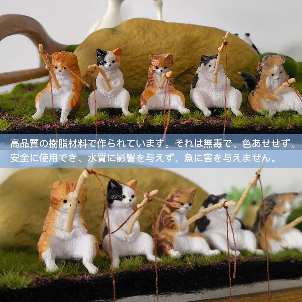 【在庫セール】釣り猫 5個セット 猫フィギュア 子猫釣り 置物 樹脂 リアル ミニ 猫釣り 癒し 和風 懸垂装飾品 雰囲気作り 水族館 魚の水槽 庭 雑貨 オフィス 装飾 (B) | allstore3