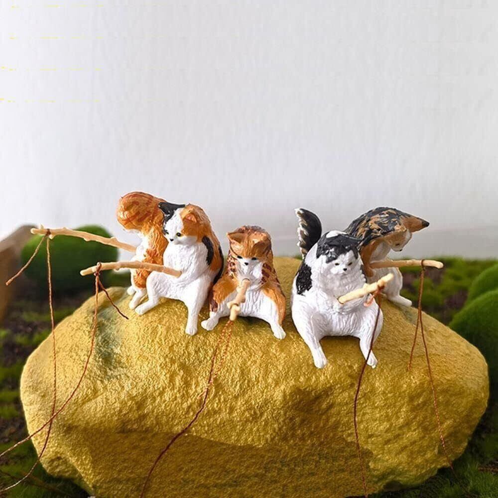 釣り猫 5個セット 猫フィギュア 子猫釣り 置物 樹脂 リアル ミニ 猫釣り 癒し 和風 懸垂装飾品 雰囲気作り 水族館 魚の水槽 庭 雑貨 オフィス 装飾 (B)