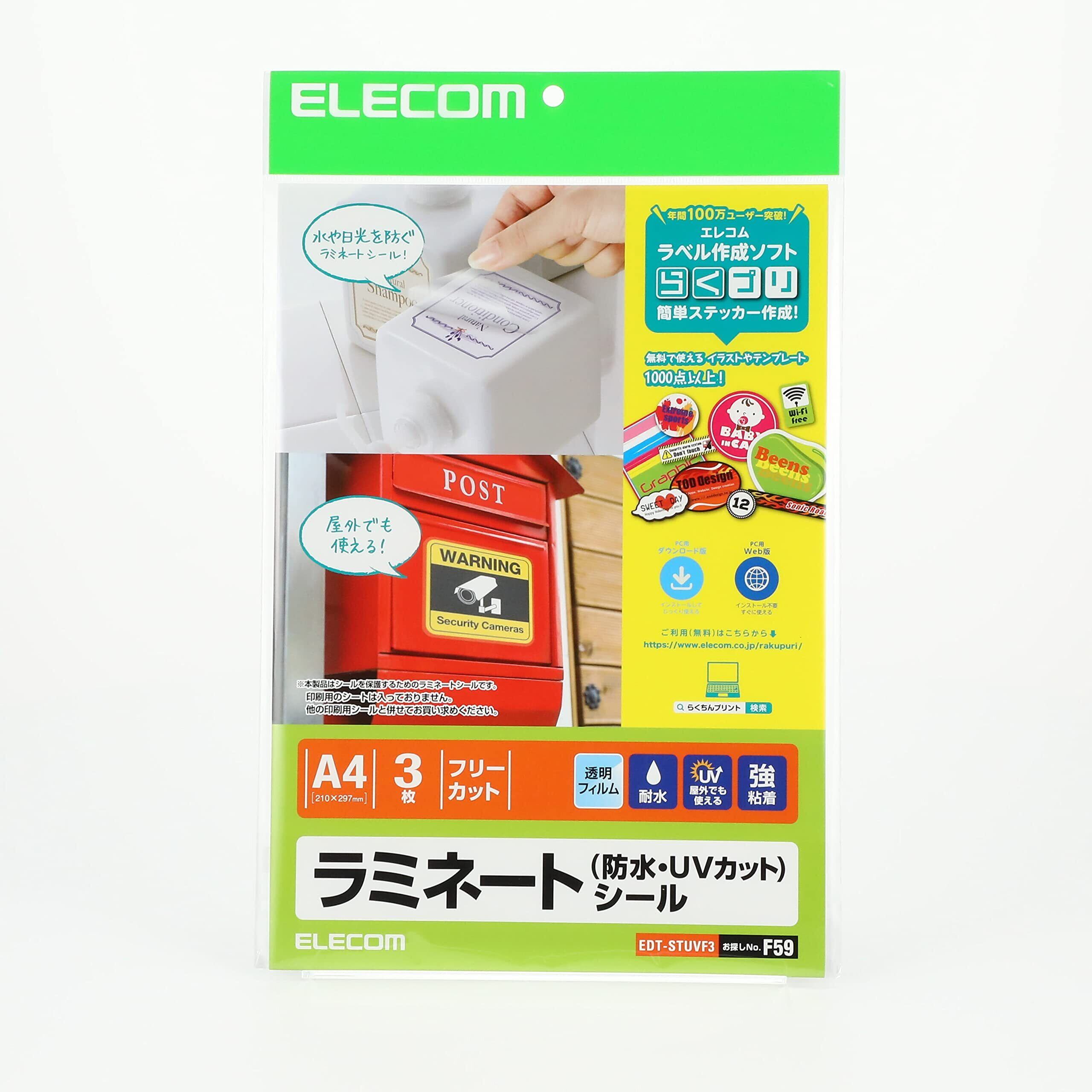 エレコム カバーフィルム ラミネートシール 透明 防水・UVカット A4 EDT-STUVF3