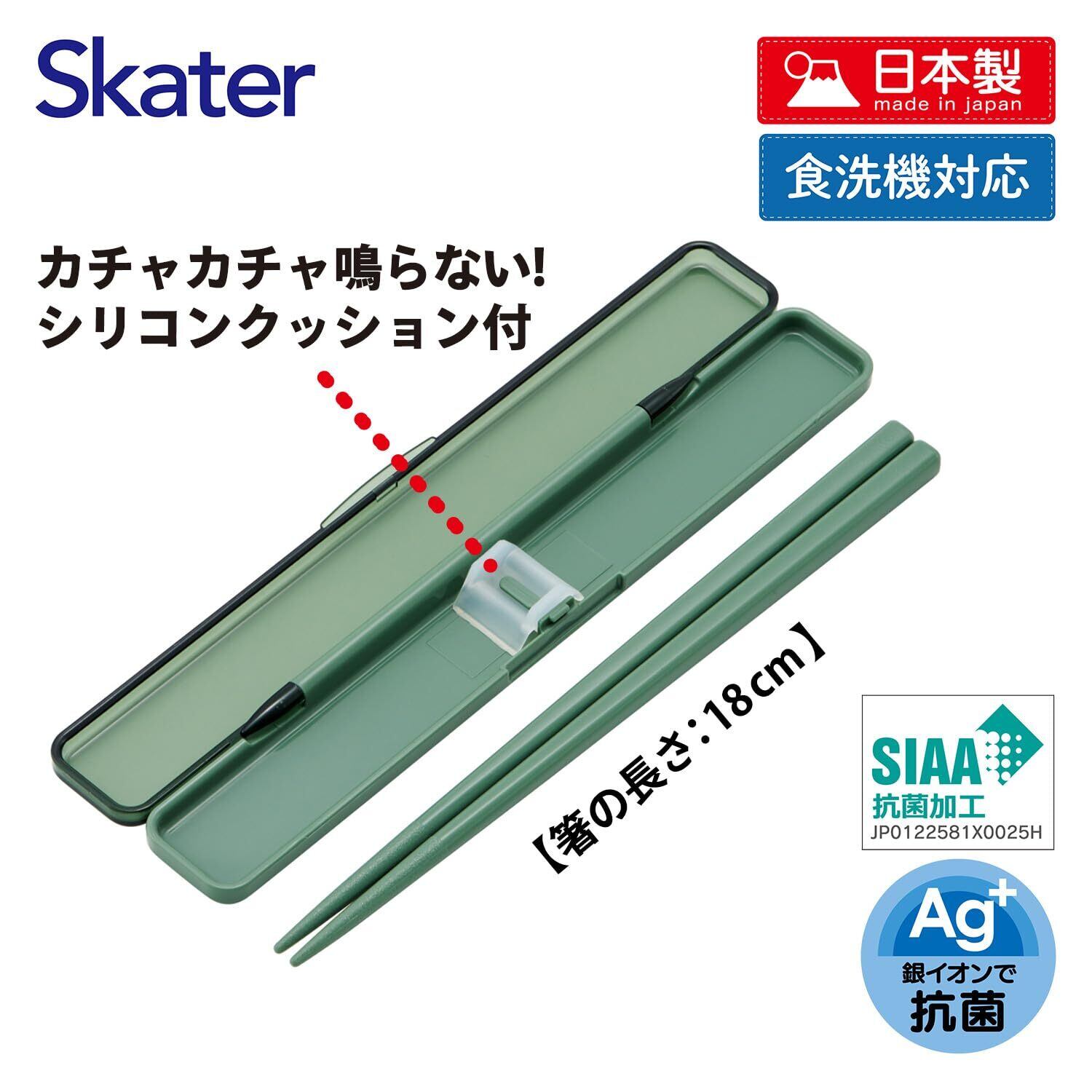 スケーター(Skater) 箸 箸箱 セット セージグリーン 18cm 抗菌 大人用 日本製 ABC3AG-A