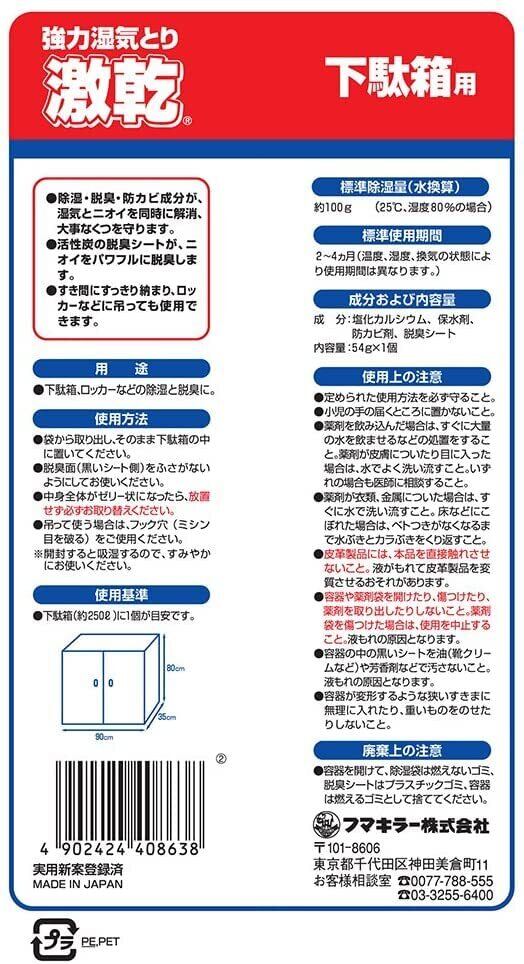 激乾 【まとめ買い】フマキラー 下駄箱用 除湿剤 強力湿気取り 脱臭 防カビ対策 × 3個