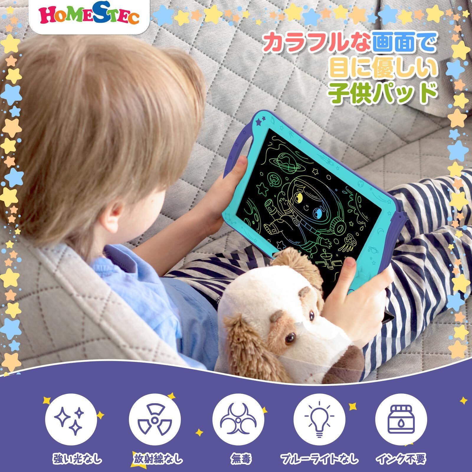 【カラフル画面・高輝度・アルファベット・数字勉強】想像力が宇宙へ飛び立つ!Homestecの新製品、AstroDraw子供用お絵かきボードがついに登場!AstroDrawは宇宙探検をテーマにしており、流れ星、惑星、ロケットなどの宇宙の要素がメモボードの周りに飾られていて、とても可愛いです。視力に優しい液晶スクリーン上で、子供たちは自由に想像力を発揮することができ、簡単に描けばカラフルな夢の世界が広がります。AstroDrawの画面の輝度が向上し、暗い場所でも字体が鮮明に表示されます。遊びながら、子供の思考力、手先の器用さ、想像力を養うことができます。また、お絵かきボードの裏側にはアルファベットと数字が印刷されており、知育玩具としても優れていて、幼児教育学習に役立ちます。