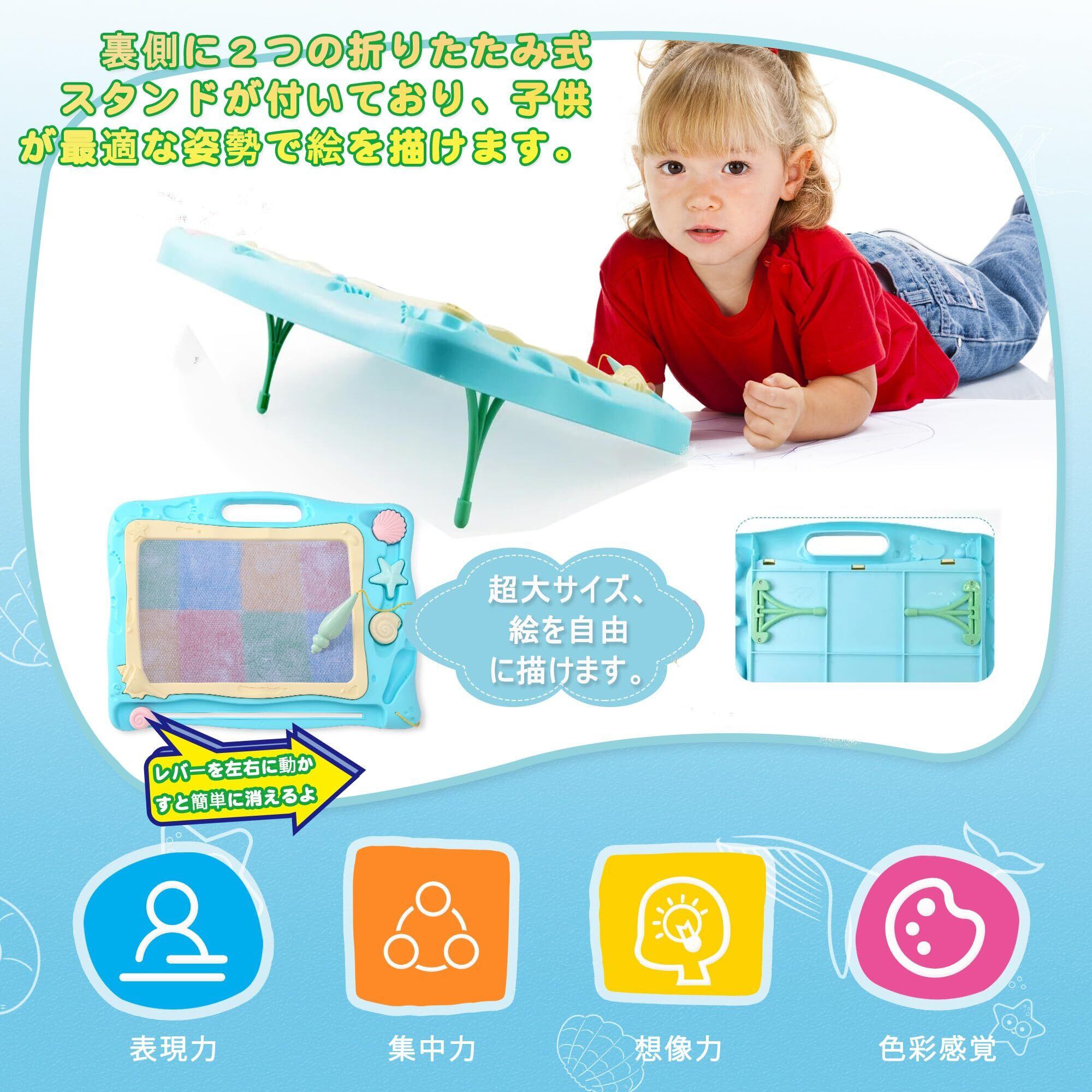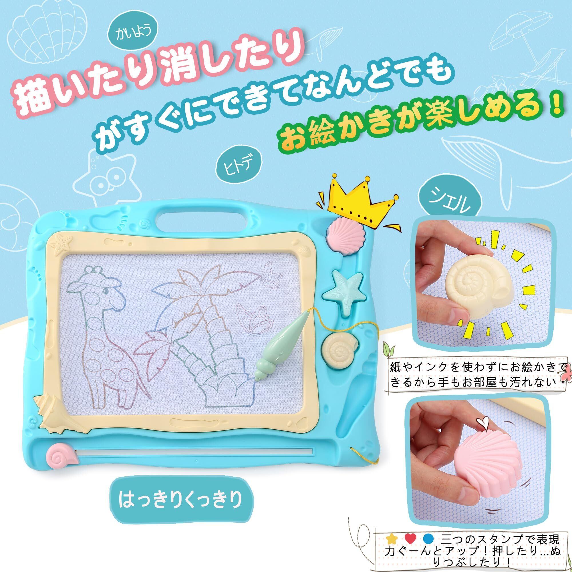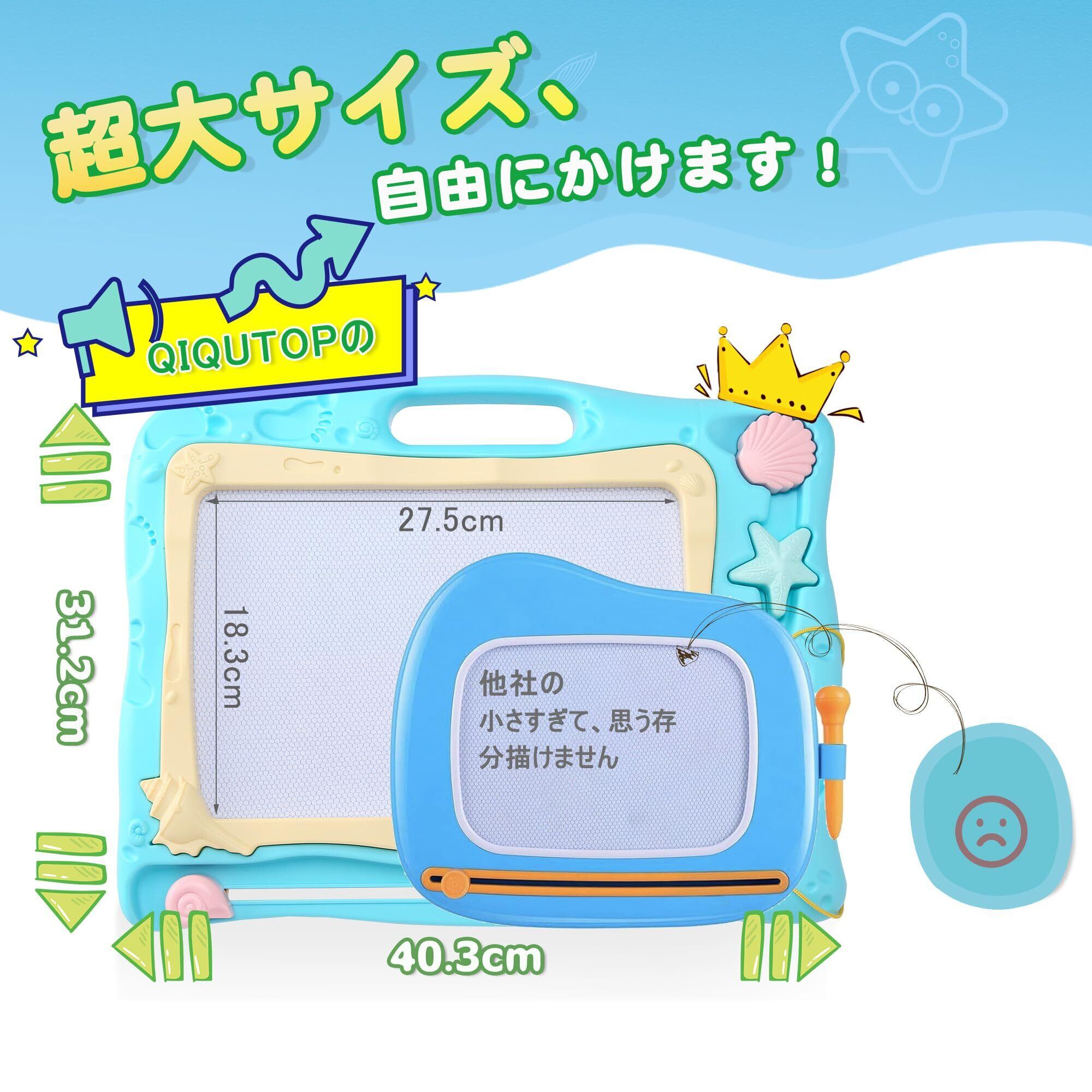 【在庫セール】お絵かきボード Qiqutop お絵描き おもちゃ 大きいサイズ 40.3*31.2CM 四色 落書きボード 3 4 5歳 男の子 女の子 誕生日 プレゼント 幼児 おもちゃ マグネットスタンプ付き(ブルー)