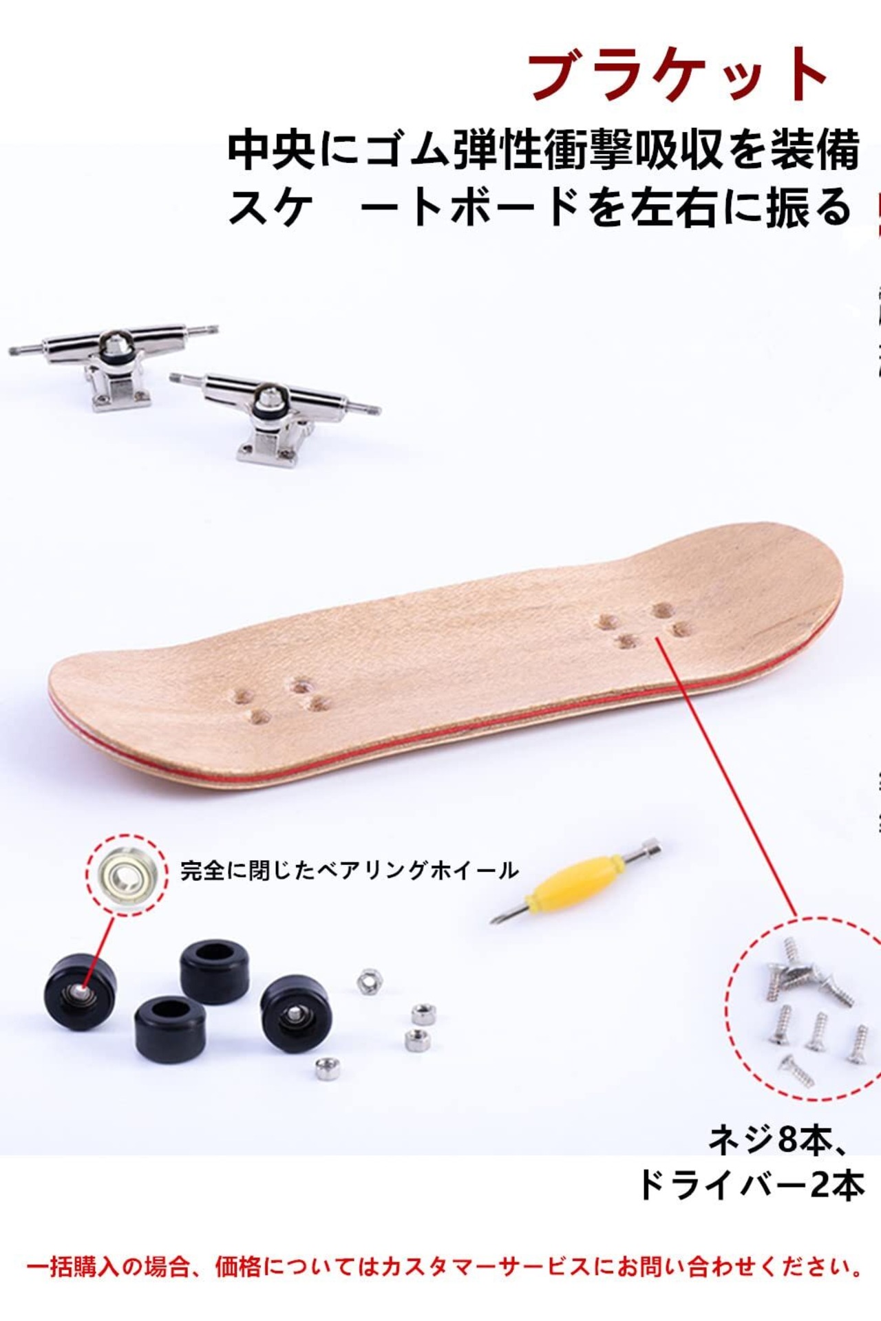 【製品デザイン】ニッケル合金素材で、表面が明るく耐久性があるだけではありません。真ん中にゴム弾性ダンピングがあり、弾力性のあるスライドを増やし、スケートボードは本物のスケートボードのように左右に振ることができます。