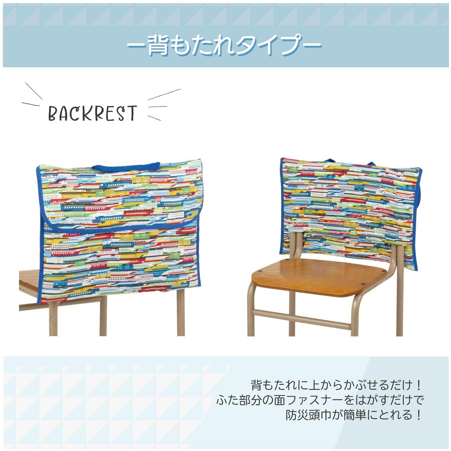 持ち手 付き で 通園 通学 時の持ち運びにも便利な 防災頭巾 カバー です。 椅子 への付け方は 座布団 タイプと 背もたれ タイプの2種類でご使用いただけます。ふた部分をめくった裏側に 名前 が書ける タグ 付き。みんなが大好きな電車 と 新幹線 がいっぱいの柄で 男の子 におすすめの アイテム です。