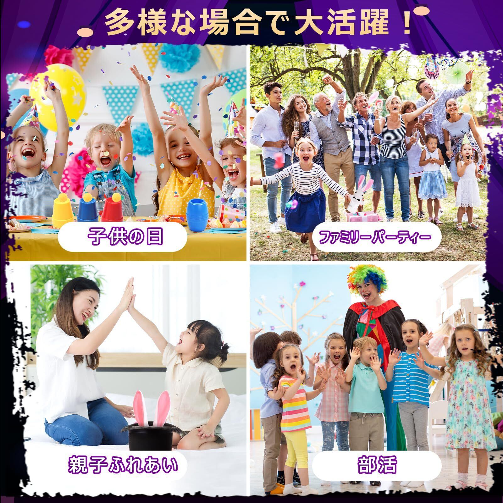 【プレゼントに最高】 この魔法セットは、様々なイベントや祝日に贈ることができます。例えば、クリスマスや誕生日のプレゼントとして贈ることができます。また、子供たちが学校や幼稚園の発表会やお祭りに向けて練習をしているときに、モチベーションを高めるための贈り物としても最適です。