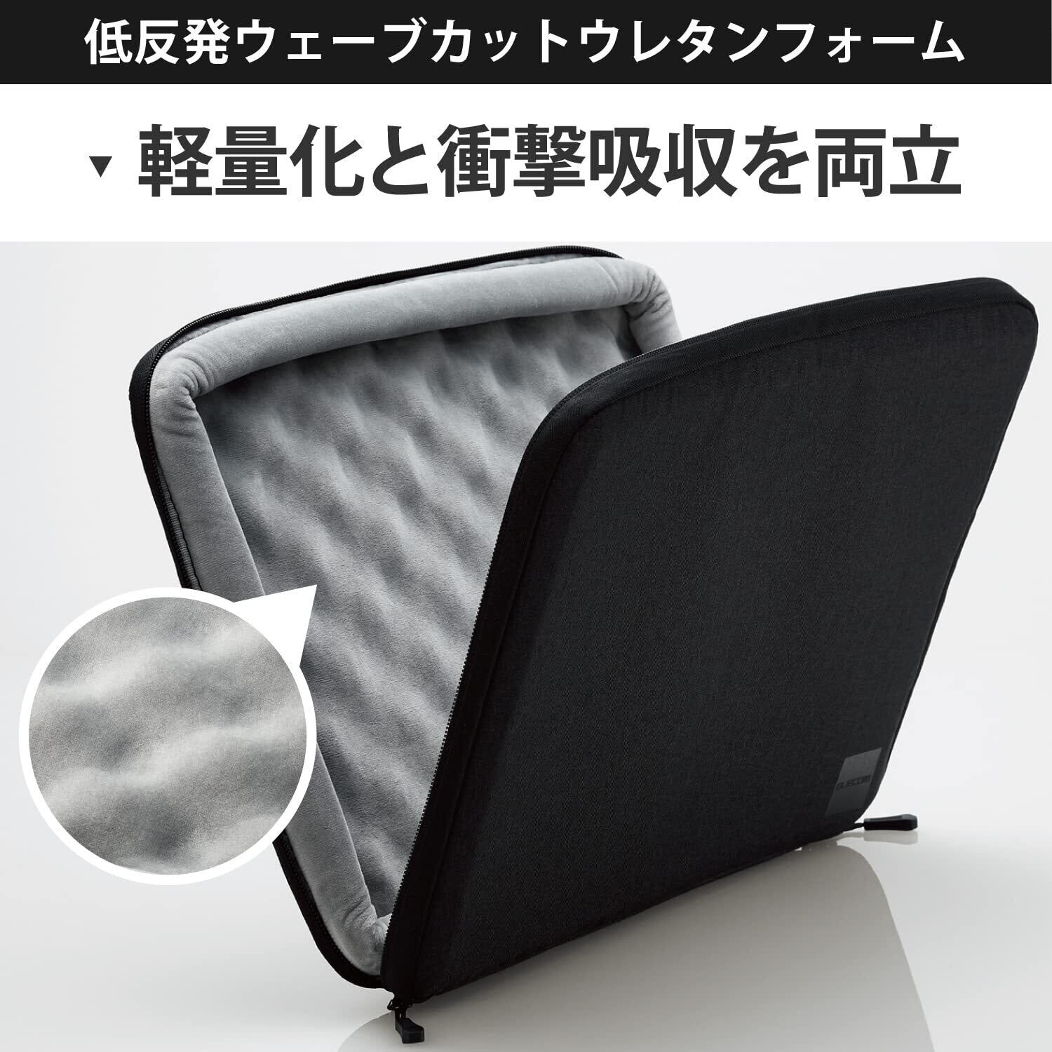 ■本体底面には、軽量化と衝撃吸収を両立する低反発ウェーブカットウレタンフォームを内蔵しています。