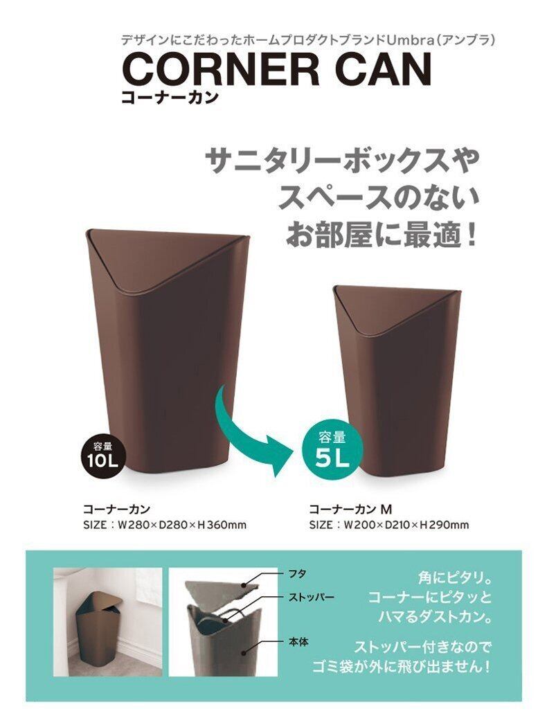 【新着商品】【umbra】 ゴミ箱 コーナーカン ブロンズ 5L ふた付き 角型 ペール ダストボックス
