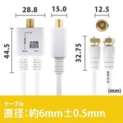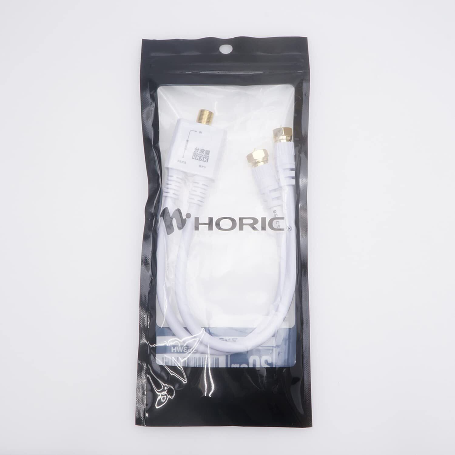 ホーリック アンテナ分波器 【4K8K放送(3224MHz)/BS/CS/地デジ/CATV 対応】 ケーブル一体型 20cm ホワイト ネジ式コネクタ AE-563WH