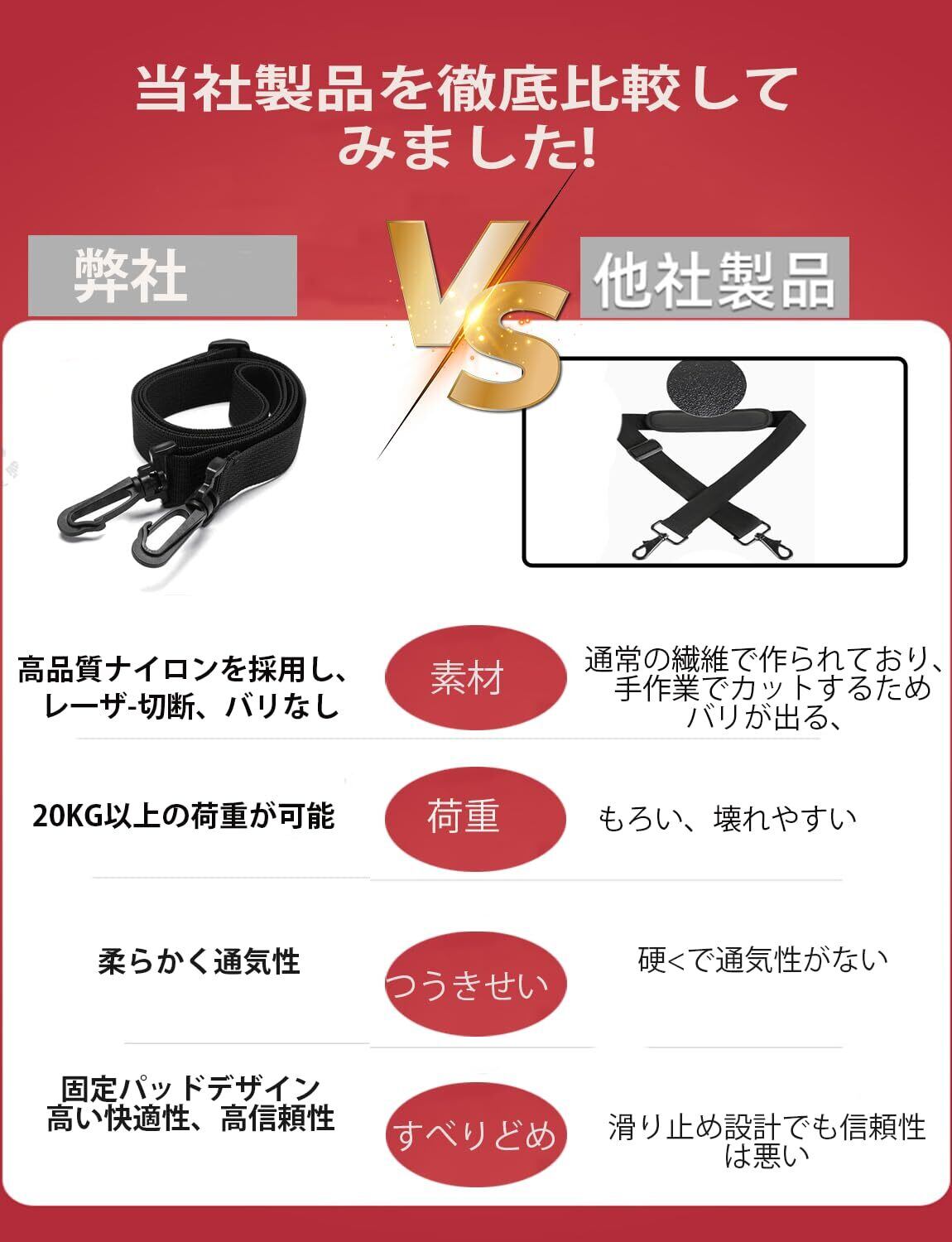 【幅広い用途】この製品は、カメラバッグ、コンピューター/タブレットバッグ、機材バッグ、ビジネスバッグ、スリーブ/ブリーフケース、ショルダーバッグ、スポーツバッグなど、ほとんどのバッグ製品に適したユニバーサルスペア/交換用ショルダーストラップです。 ストラップの両端にはフックとカラビナが付いており、ケースやバッグなどに簡単に取り付けたり取り外したりできます。ショルダーストラップのフック部分は360°回転するので、ストラップロープがよじれたりねじれたりしても、すぐに調整して元の位置に戻すことができ、とても便利です。
