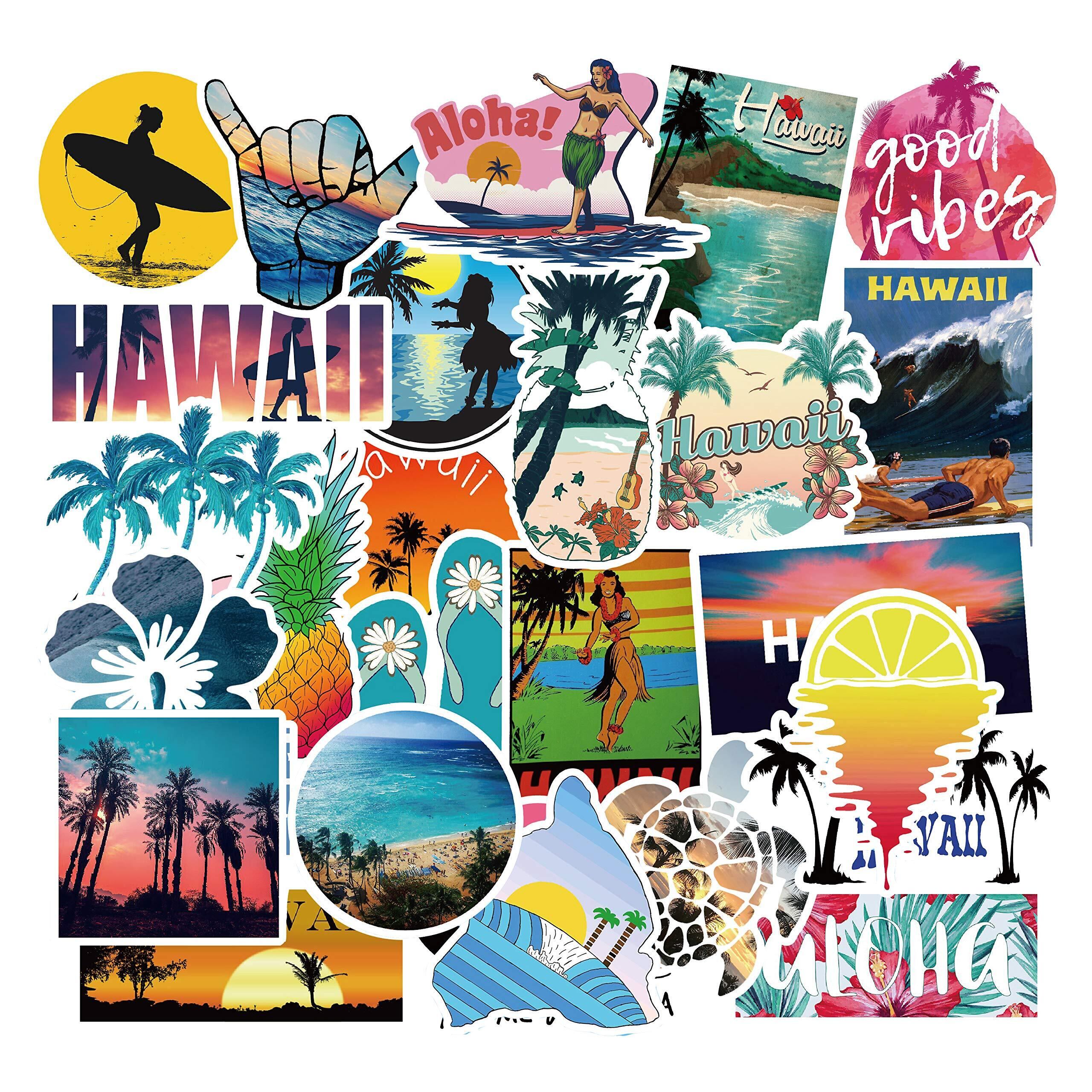 【高品質ステッカー】高品質のPVC材料で作られており、防水で色褪せなく、しかも環境にやさしいハワイステッカーパックです。