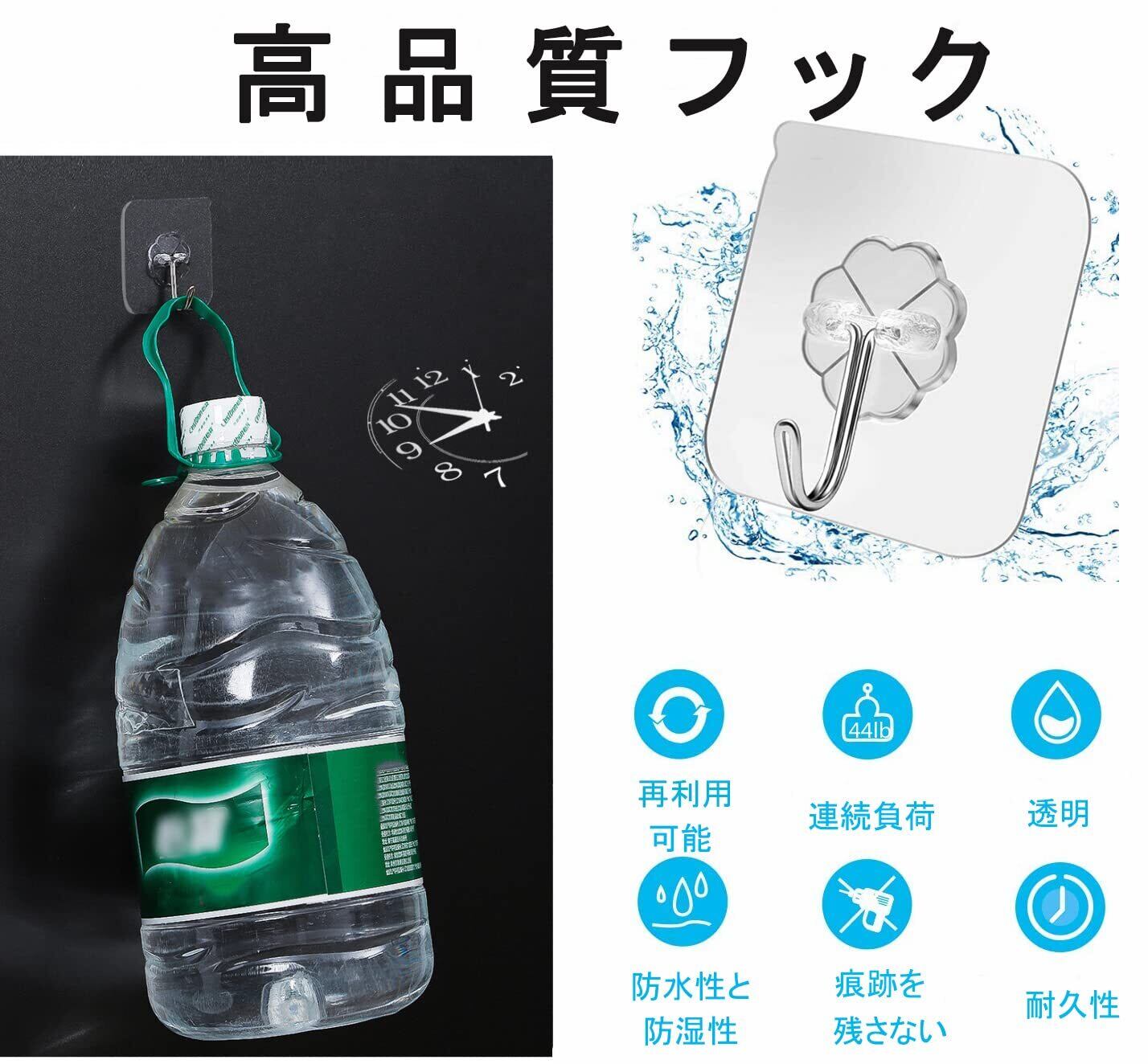 壁掛け フック 粘着 強力 壁穴あけないフック - YOKELLMUX 壁掛けフック 粘着フック 耐荷重20KG 穴開けない 傷つけない 貼り付け跡なし 防水 防湿 錆びない 10枚セット