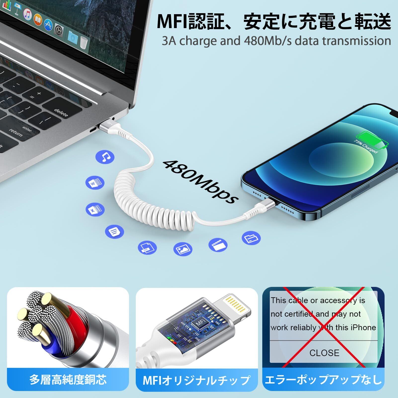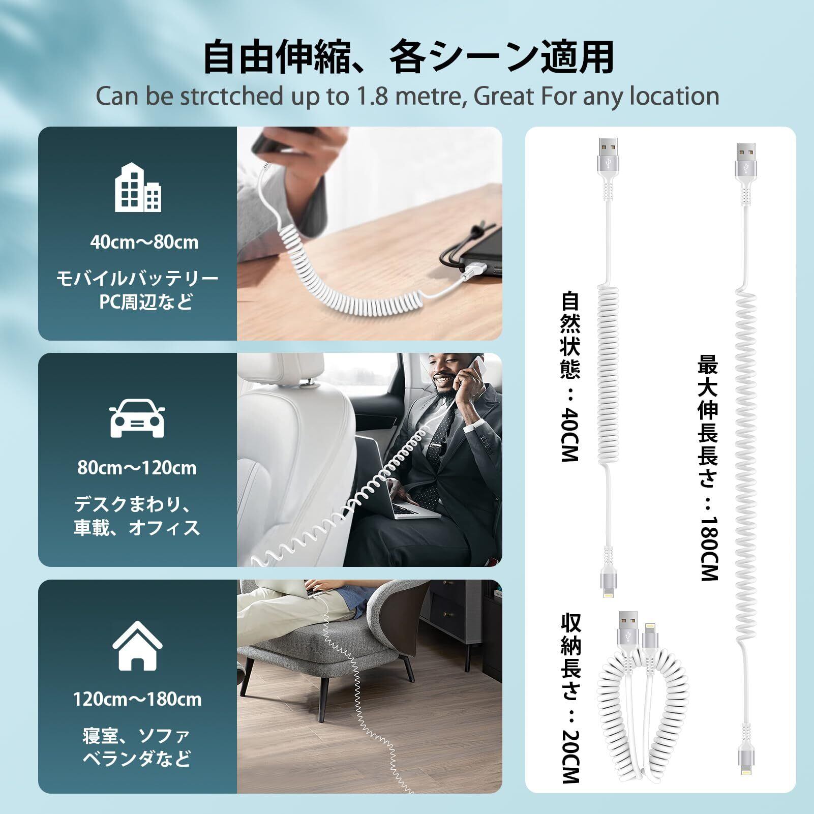 【品質】ライトニング伸縮ケーブル*1本、12ヶ月以内に無償交換或いは返金します。 iPhone/iPad/AirPods/Carplayなどに対応。注:CarPlay機能に問題が発生した場合は、CarPlayに接続する前に、コイル型iPhone充電ケーブルを再挿入し、Lightningコネクタを逆にしてみてください。さらにご質問がある場合は、お気軽にお問い合わせください。