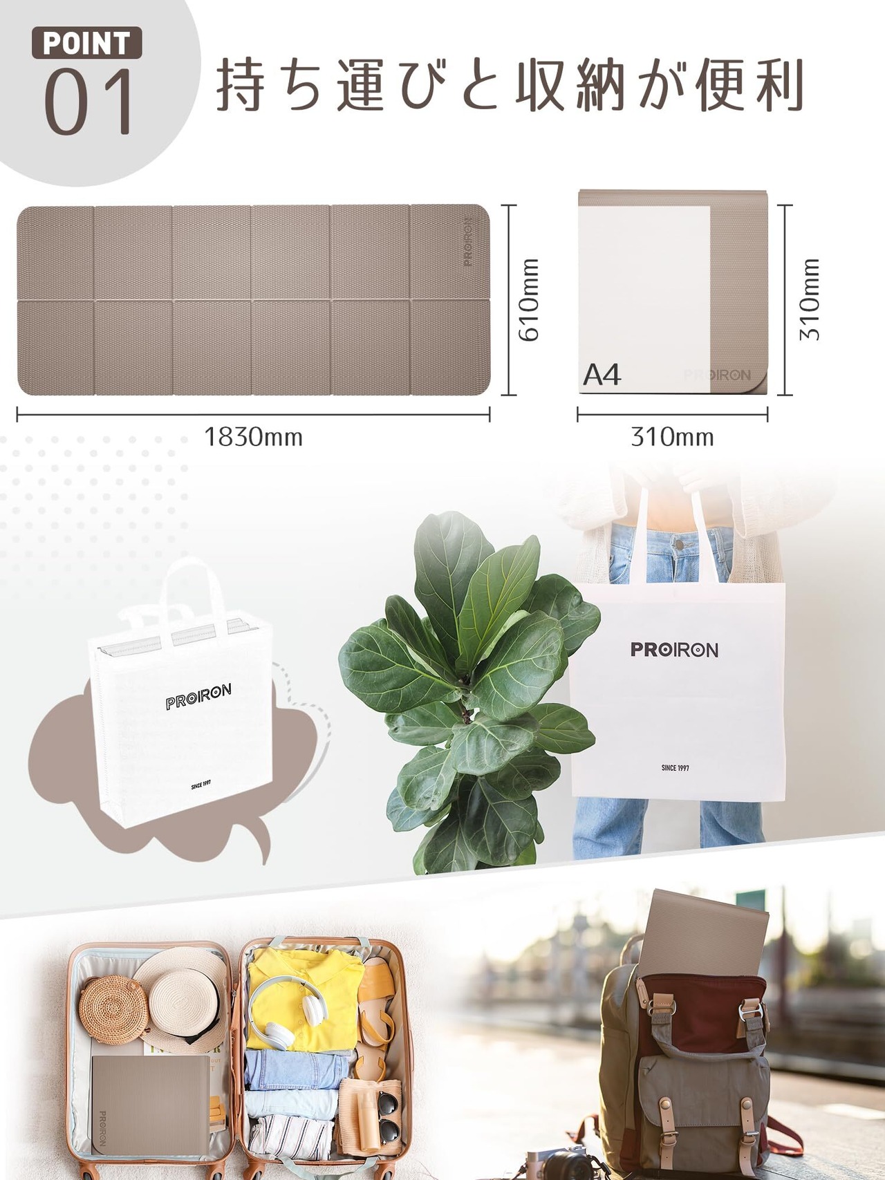 【人気商品】PROIRON ヨガマット 折りたたみ ストレッチマット 折畳み 6mm 折り畳みヨガマット コンパクト トラベルヨガマット トレーニングマット 折りたたみ 厚め 軽量 持ち運び TPE 材料 183×61×0.6cm | allstore3