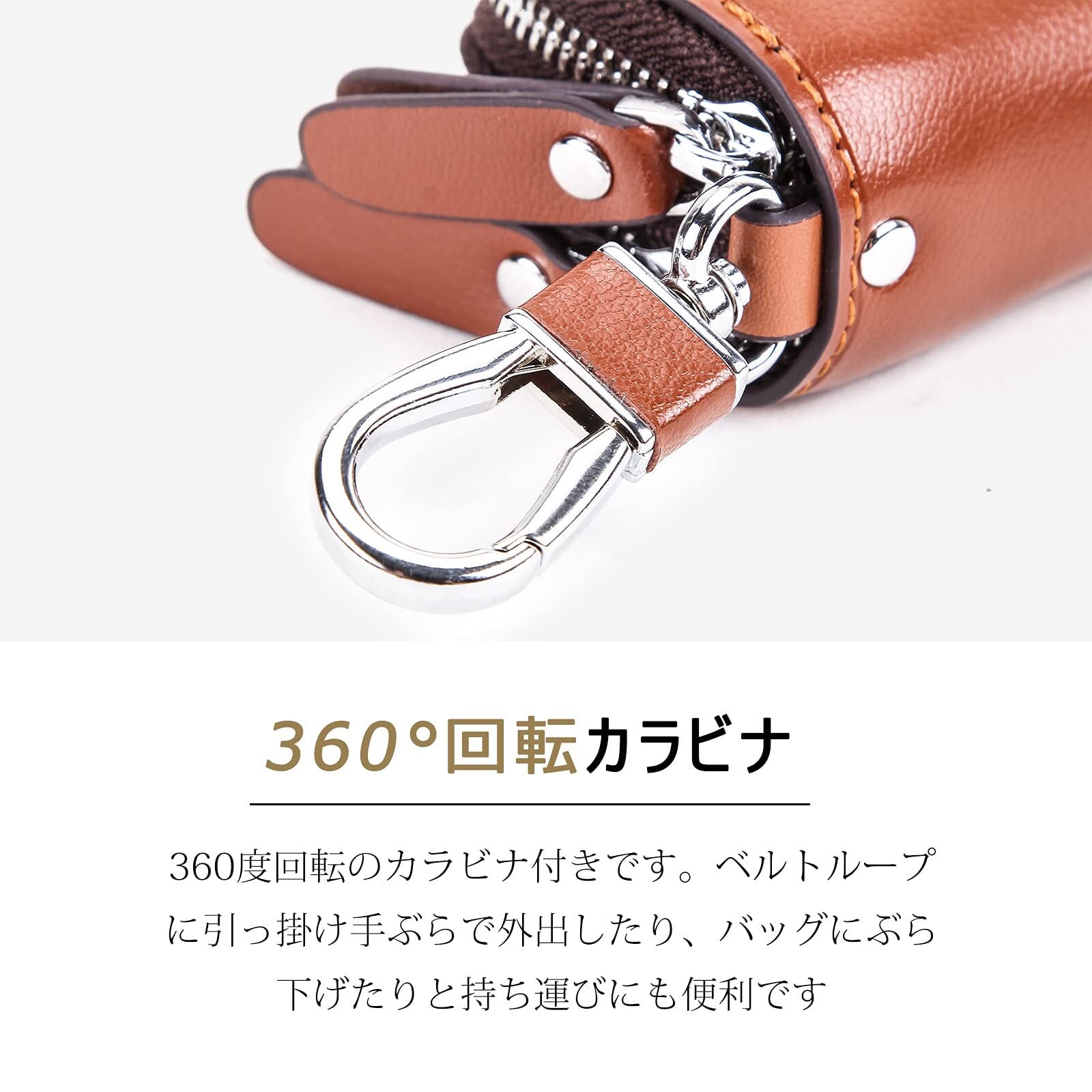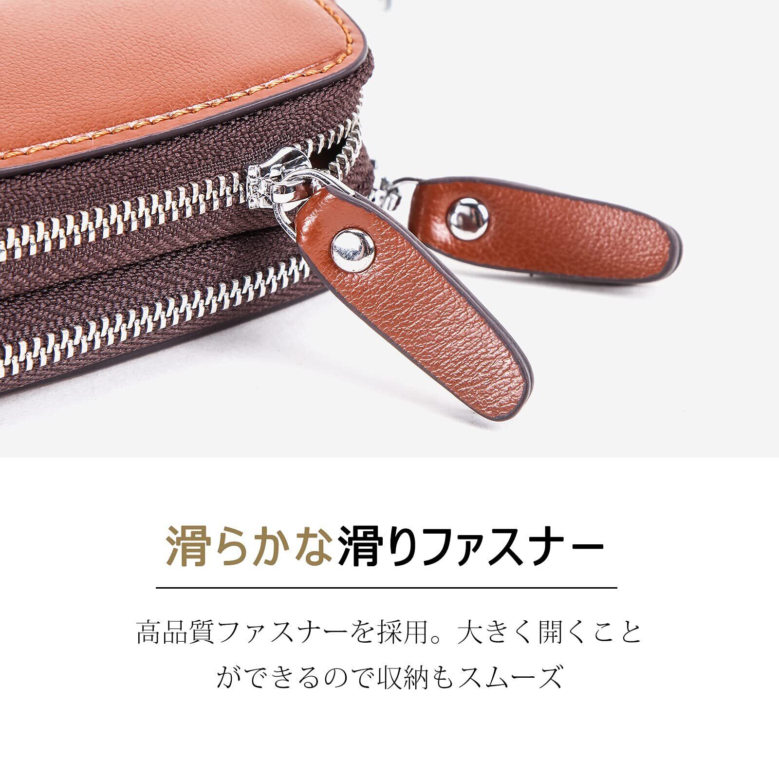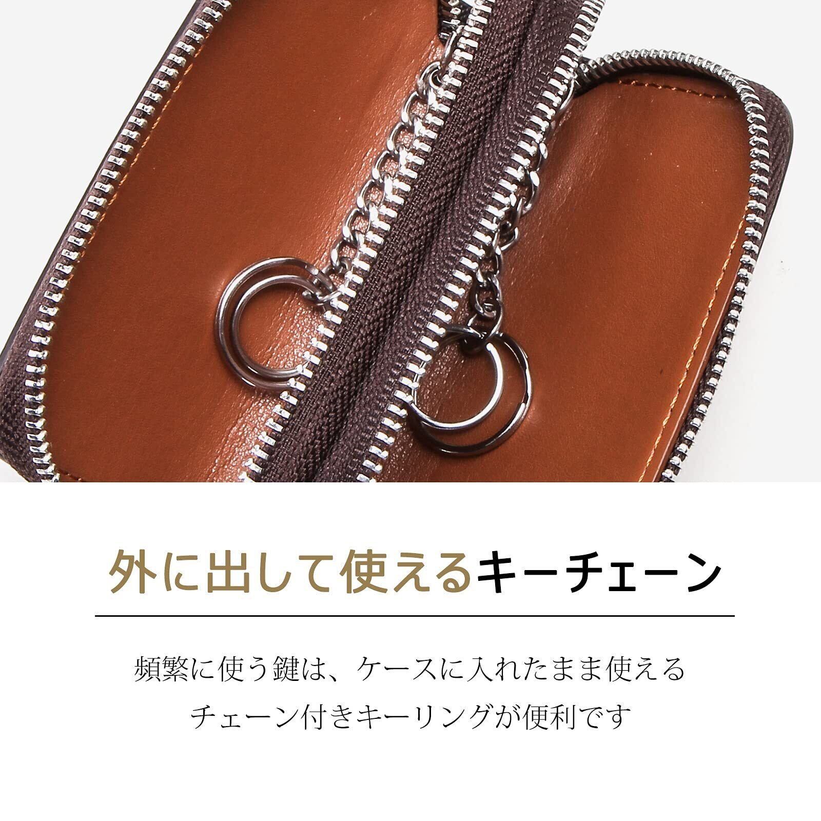 [HIRAM] キーケース メンズ 本革 スマートキーケース ダブルファスナー カラビナ付き DIY無料