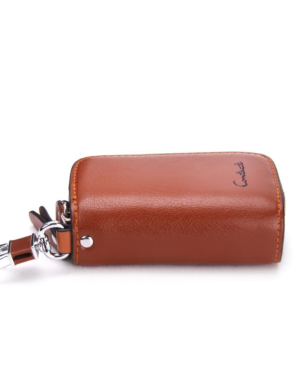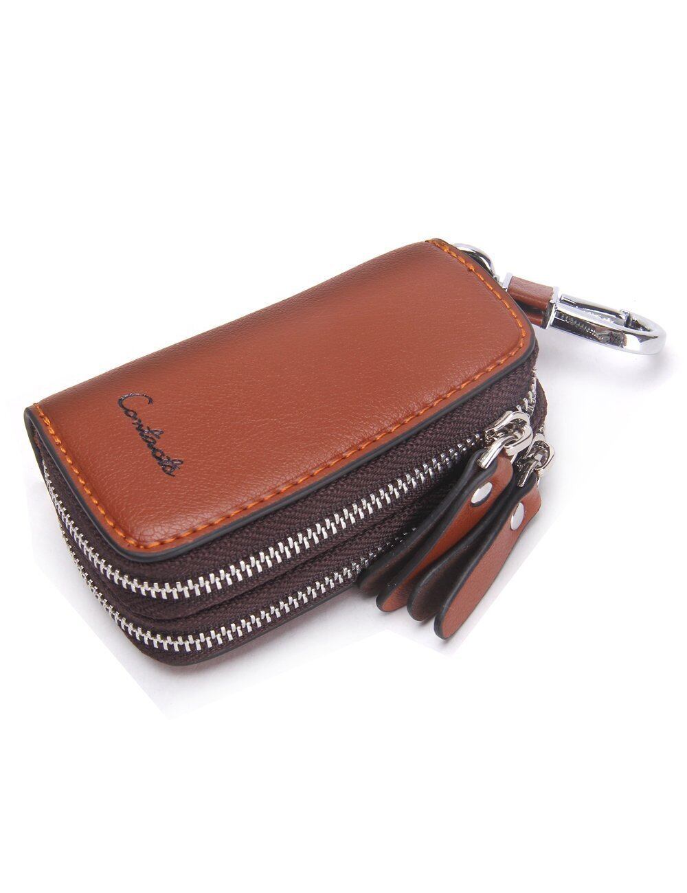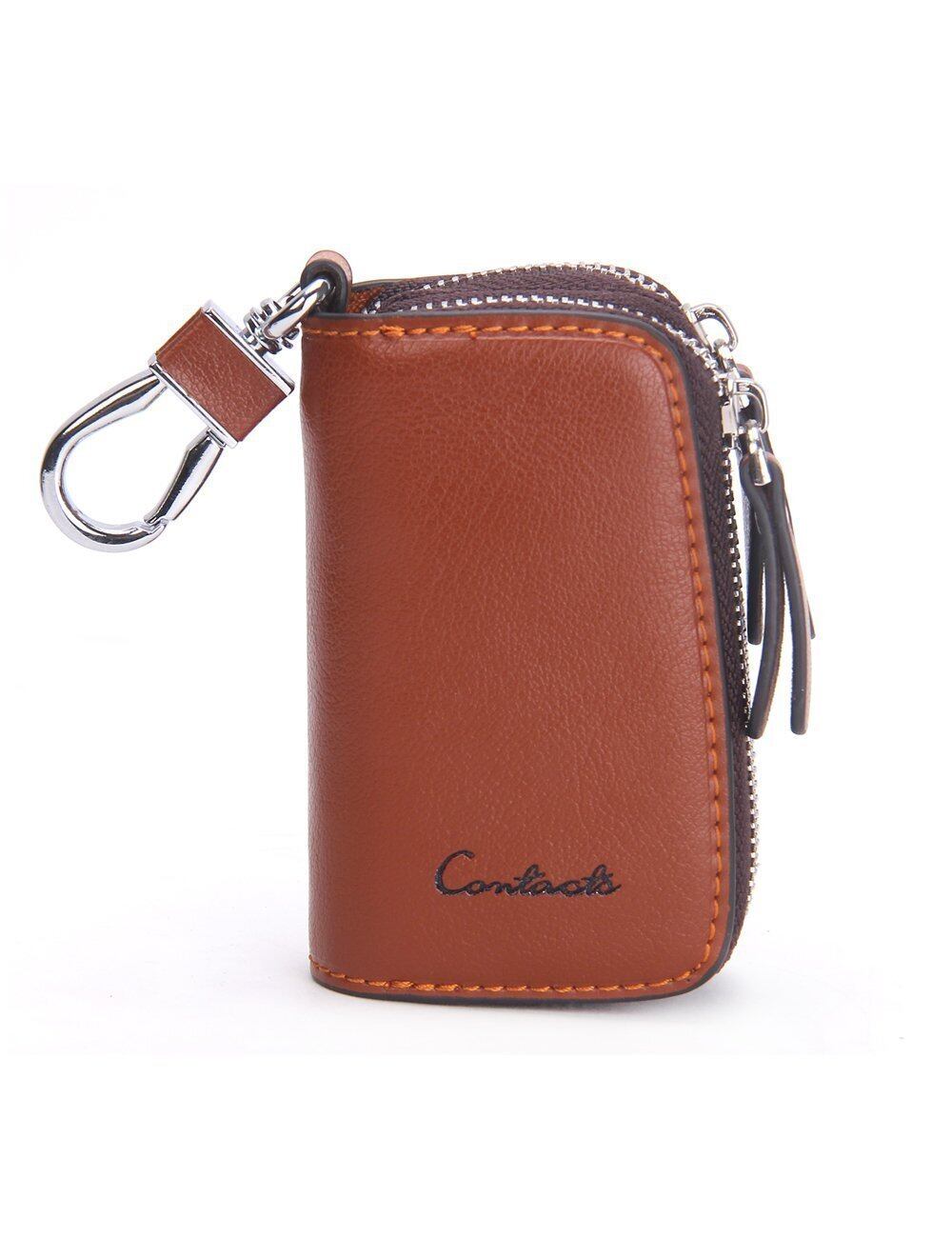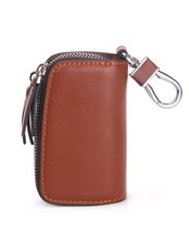 [HIRAM] キーケース メンズ 本革 スマートキーケース ダブルファスナー カラビナ付き DIY無料