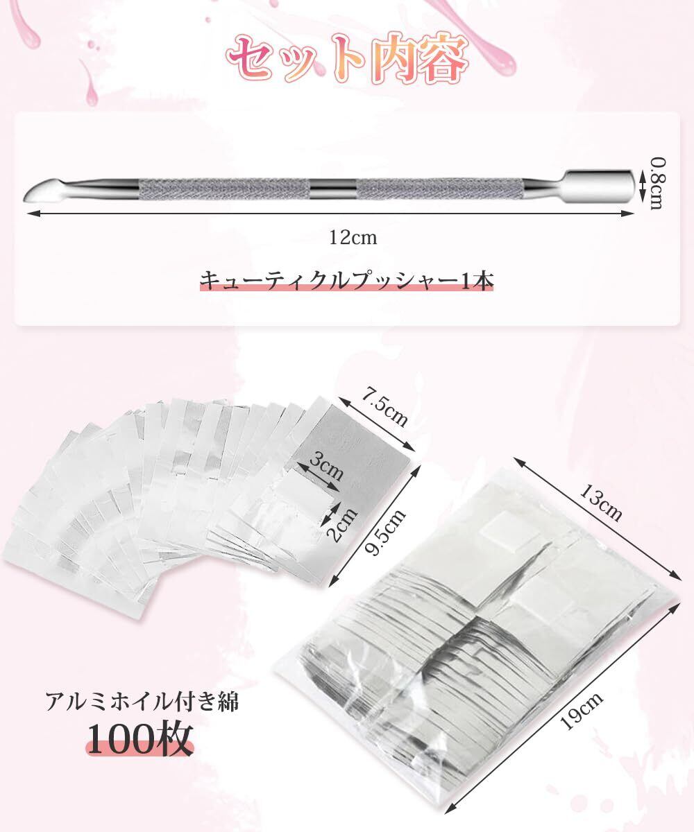 【セット内容】アルミホイル付き綿200枚、キューティクルプッシャー1本