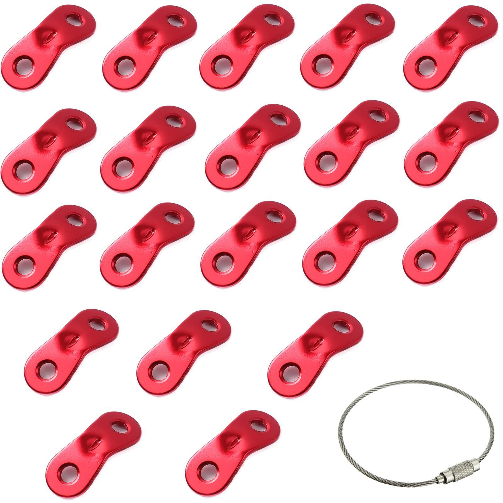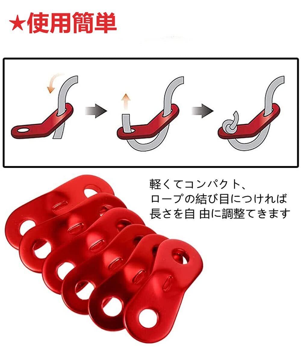 サムコス アルミニウム 自在金具 ロープ長さ調整 アウトド アキャンプ テント 5mmまで対応 20個セット 収納用ワイヤーホルダー付 (赤い色)