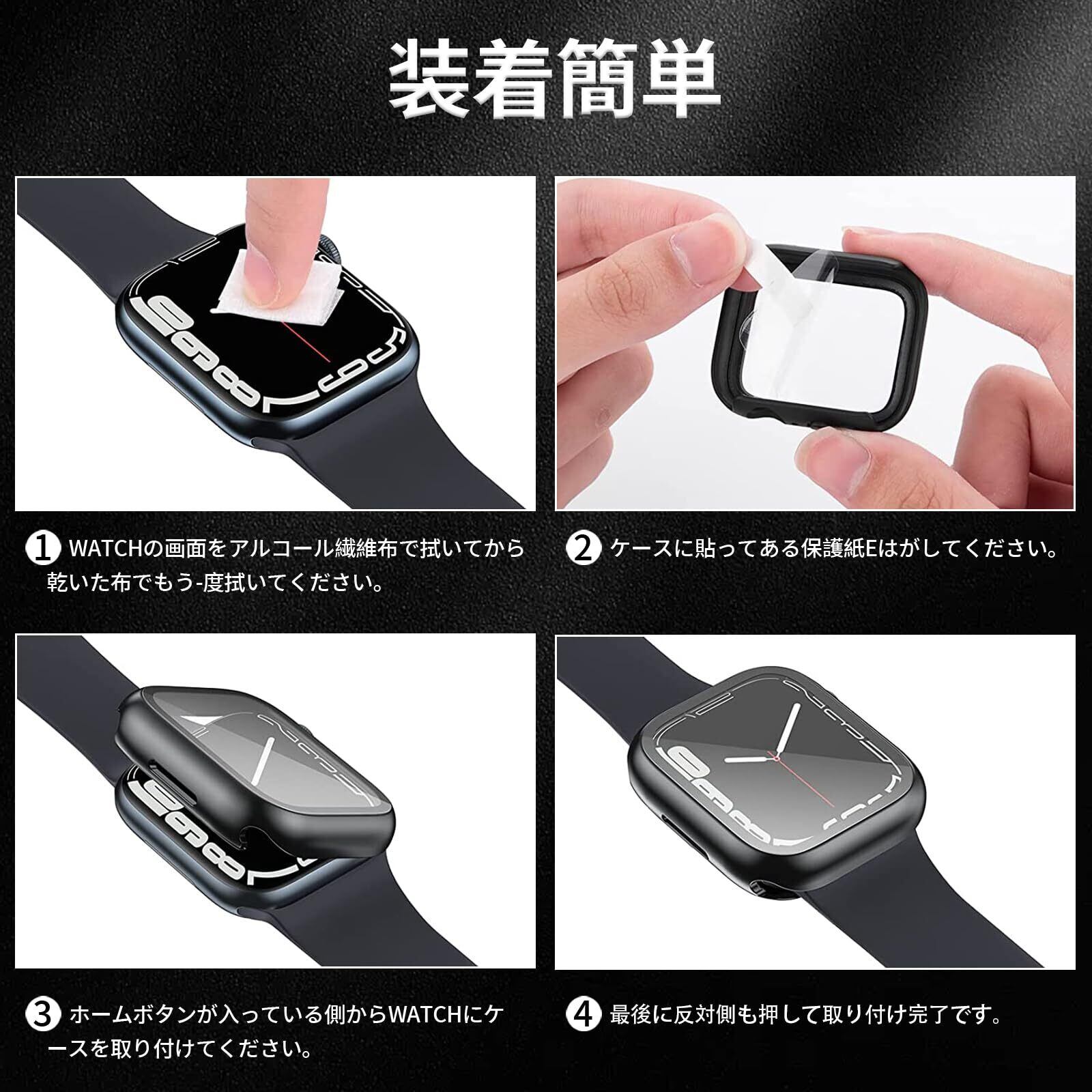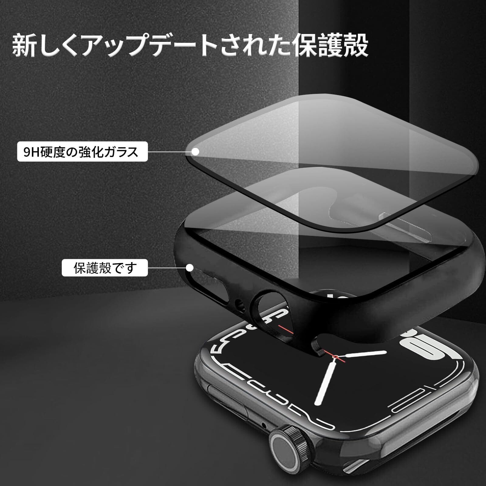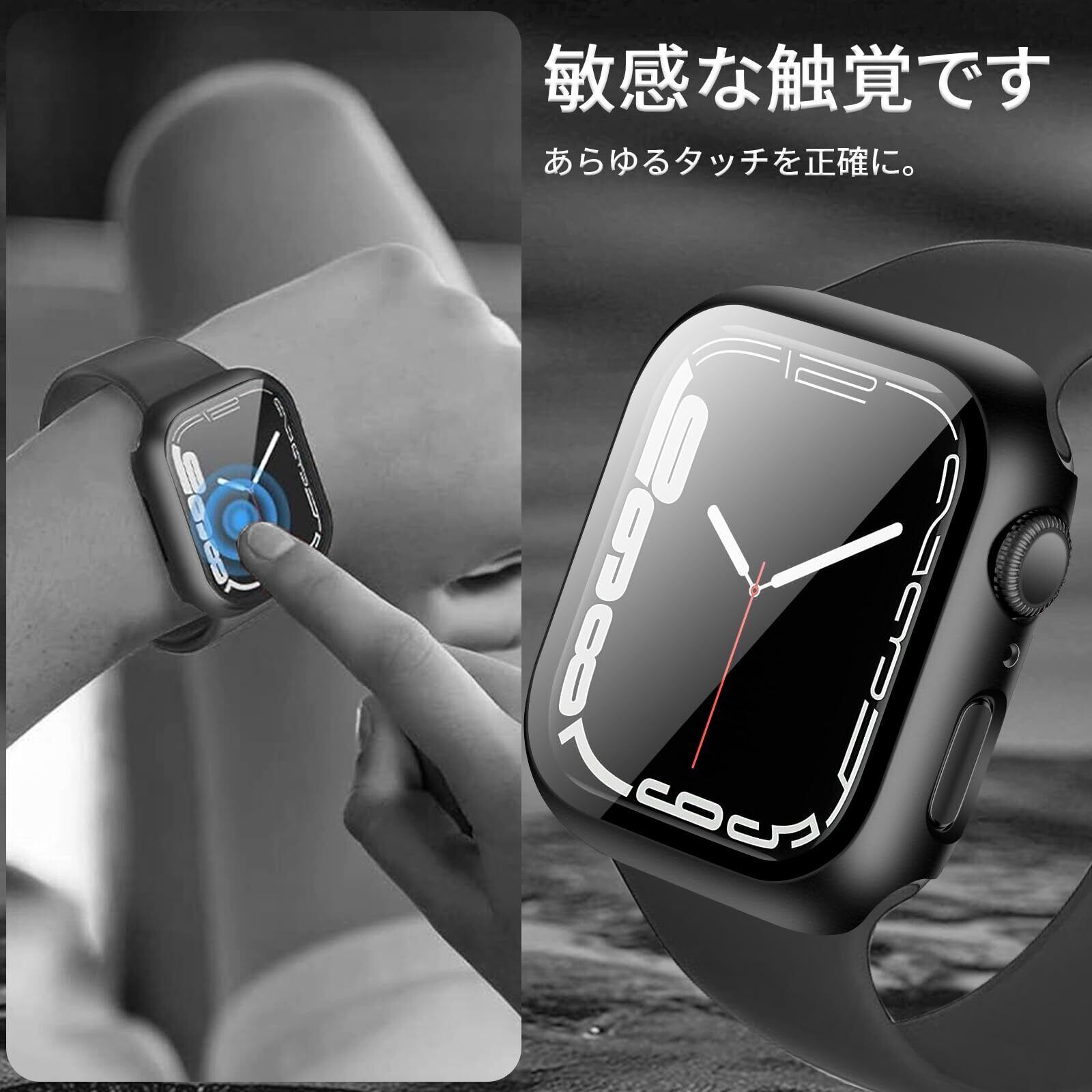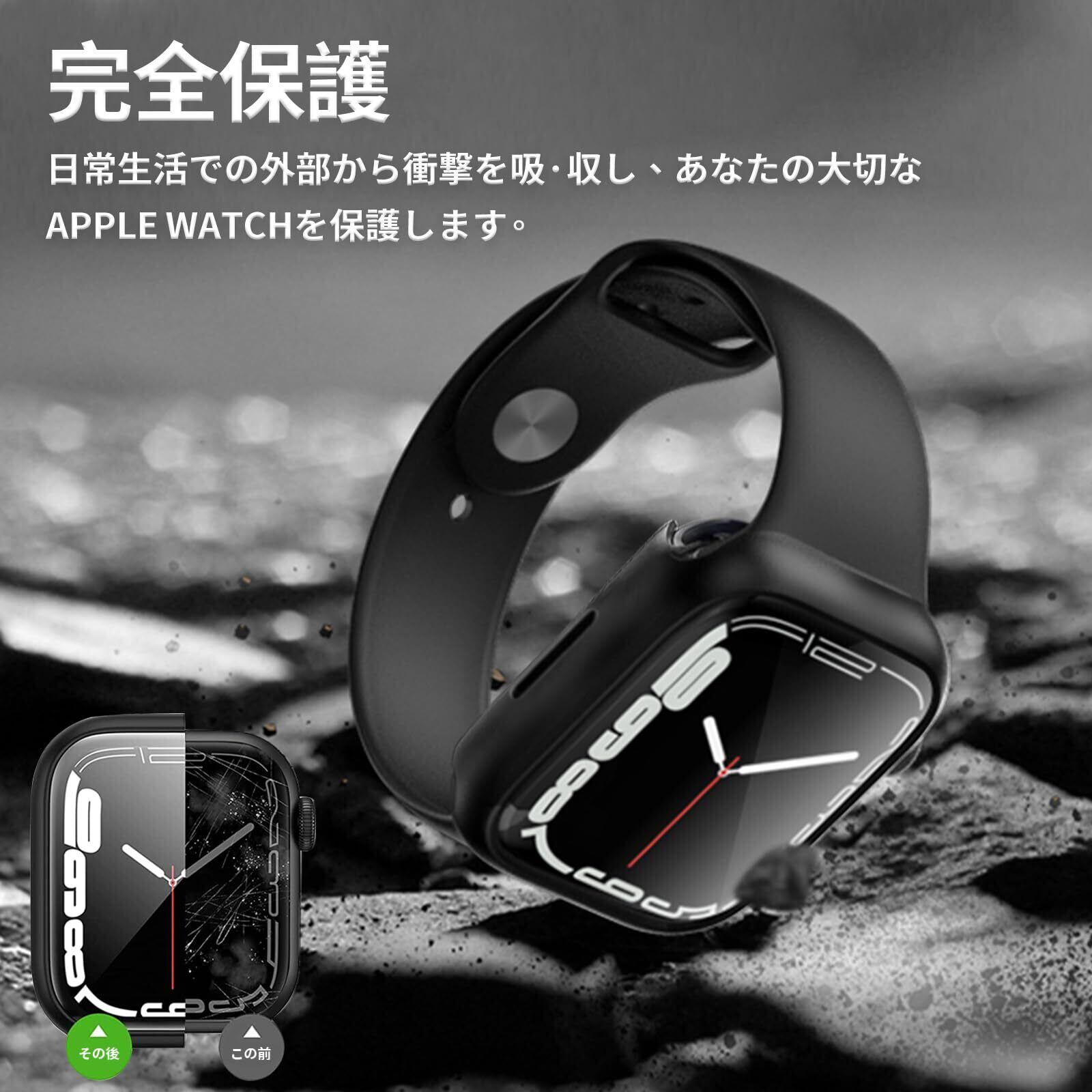 【2022最新】対応 Apple Watch ケース Series 9/8/7 41mm 保護 ケース アップルウォッチ カバー ガラスフィルム 一体型 アップルウォッチ ケース 耐衝撃 apple watch カバー 全面保護 装着簡単 高耐久 高透過率 PC素材 ブラック