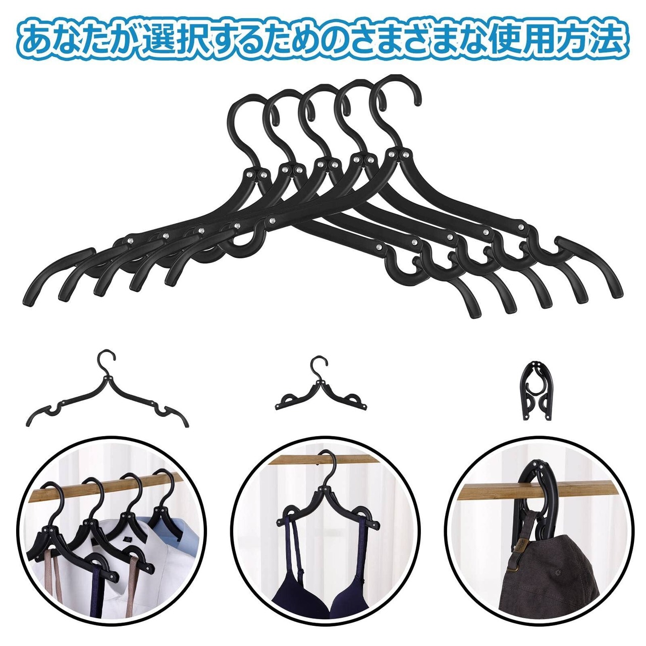【商品詳細】セット:ハンガー9個、カラー:ブラック。外旅行や国内旅行、出張やアウトドア、家庭用などで大活躍する機能的な折りたたみハンガーです。