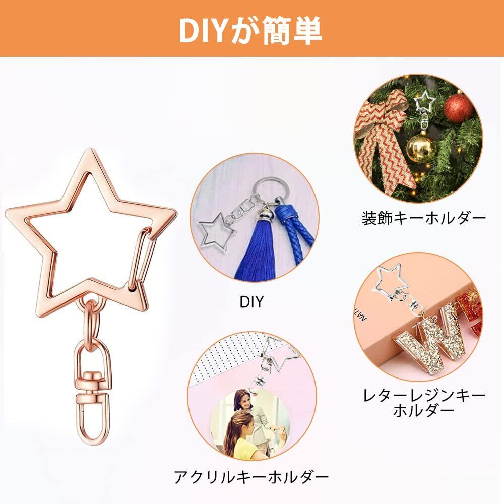 星 ナスカン キーホルダー金具 24個セット 回転カン付き 丸カン付き ワンタッチキーホルダー カワイイ DIY用パーツ 手作り 手芸用品 ハンドメイド キーリング アクセサリー 全長42mm(4色)