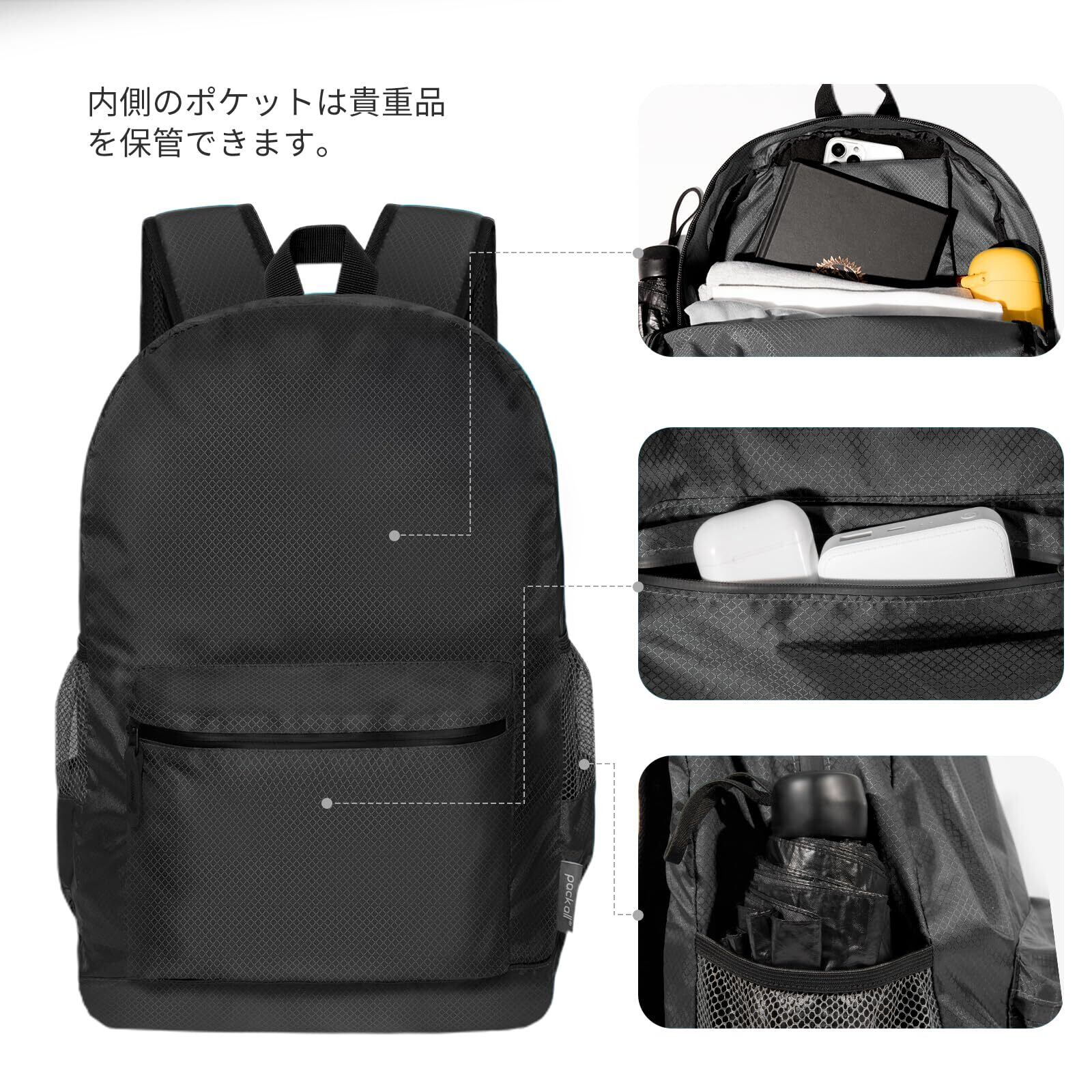 [pack all] 軽量バックパック 折りたたみ リュック防水 ハイキングデイパック 18L コンパクト アウトドア 旅行 便利グッズ