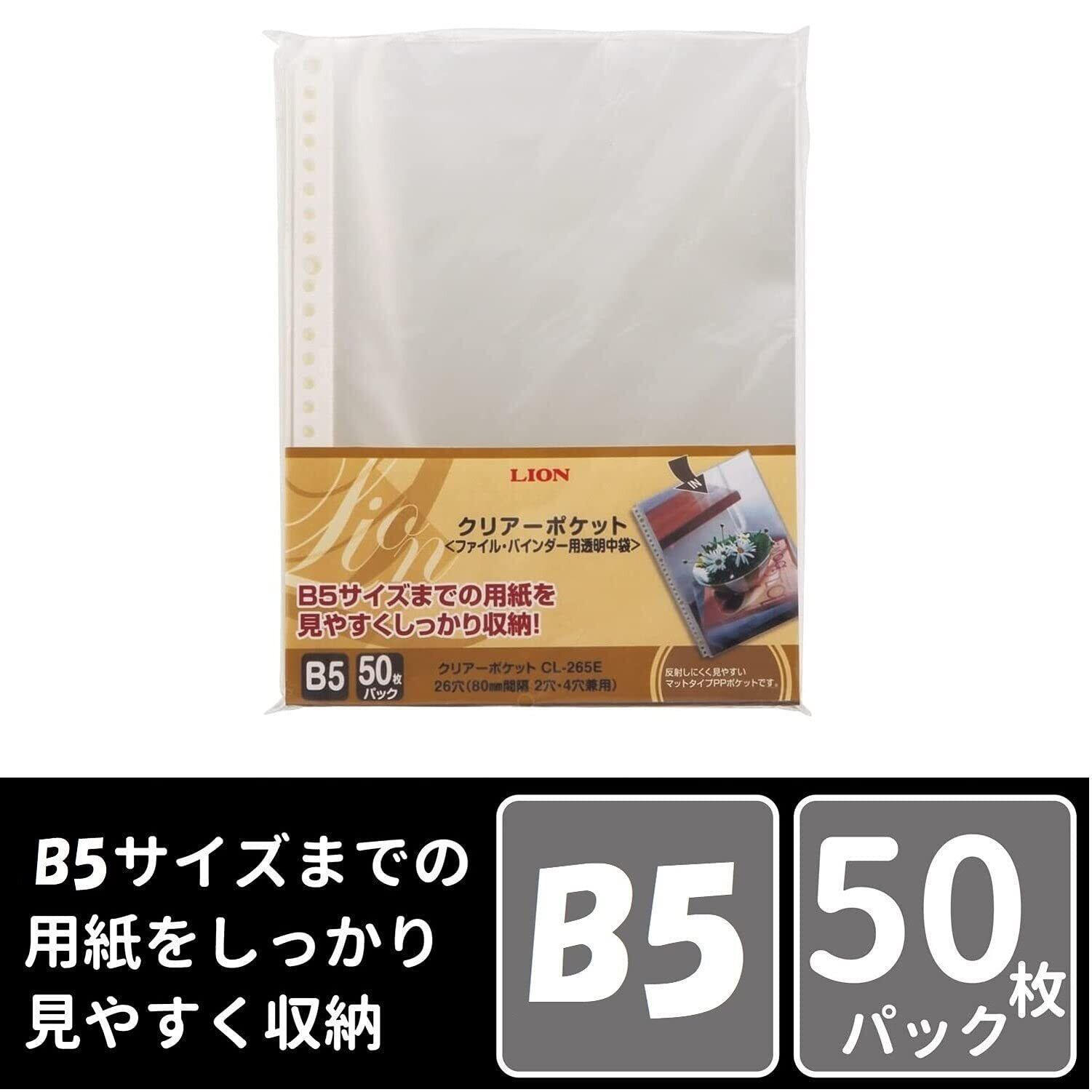 ライオン事務器 ファイル リフィル クリヤーポケット B5 50枚 CL-265E-50P