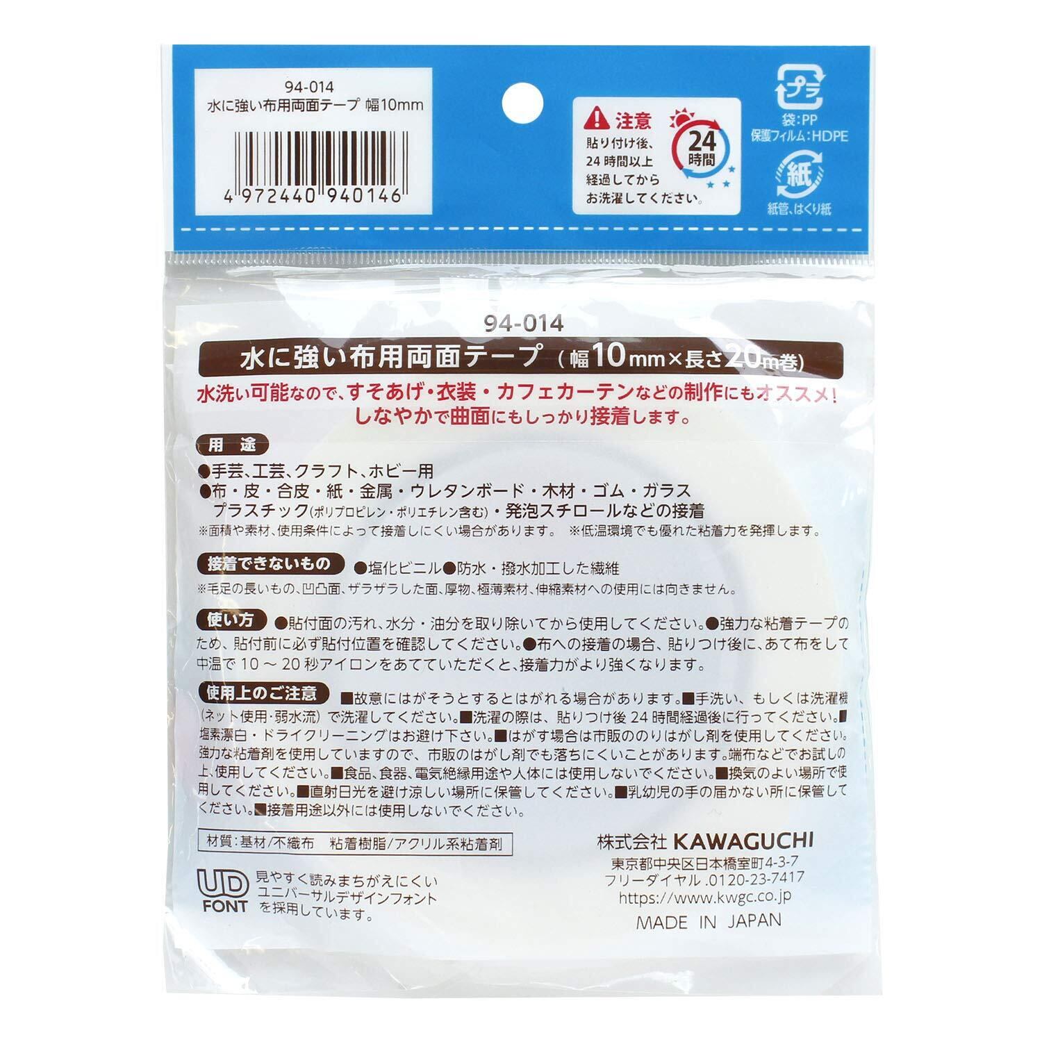 【2022最新】KAWAGUCHI(カワグチ) 手芸用品 水に強い布用両面テープ幅10mm 94-014