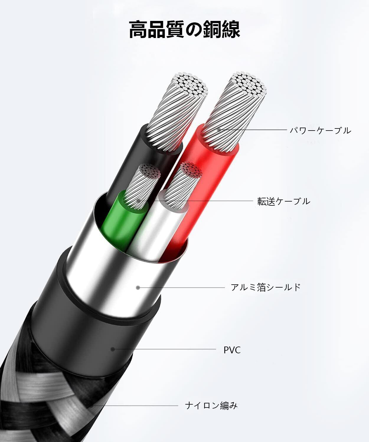 【優れた高耐久性】 アンドロイド充電ケーブルはナイロン編み素材で作ており、コネクタ部分はアルミニウム合金を採用し、10,000曲げ試験に耐えることができます。それは折れ曲りにくい、断線しにくい、絡みにくい、より耐久性があります。