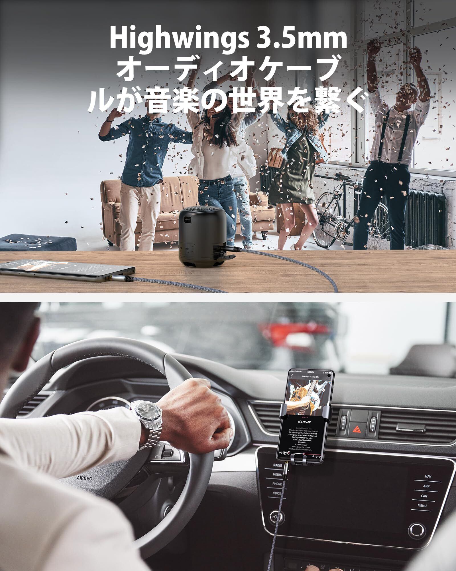 比類なき音質:Highwings 3.5オーディオケーブルは、オーディオと完全に同期した超高音質を伝送し、一音一音を明瞭に伝えます。厚みのあるメタルコネクターは、煩わしいビープ音やノイズ、モノラルのない強固な接続をし、HiFi音楽の世界を高品質で快適に楽しむことができます。