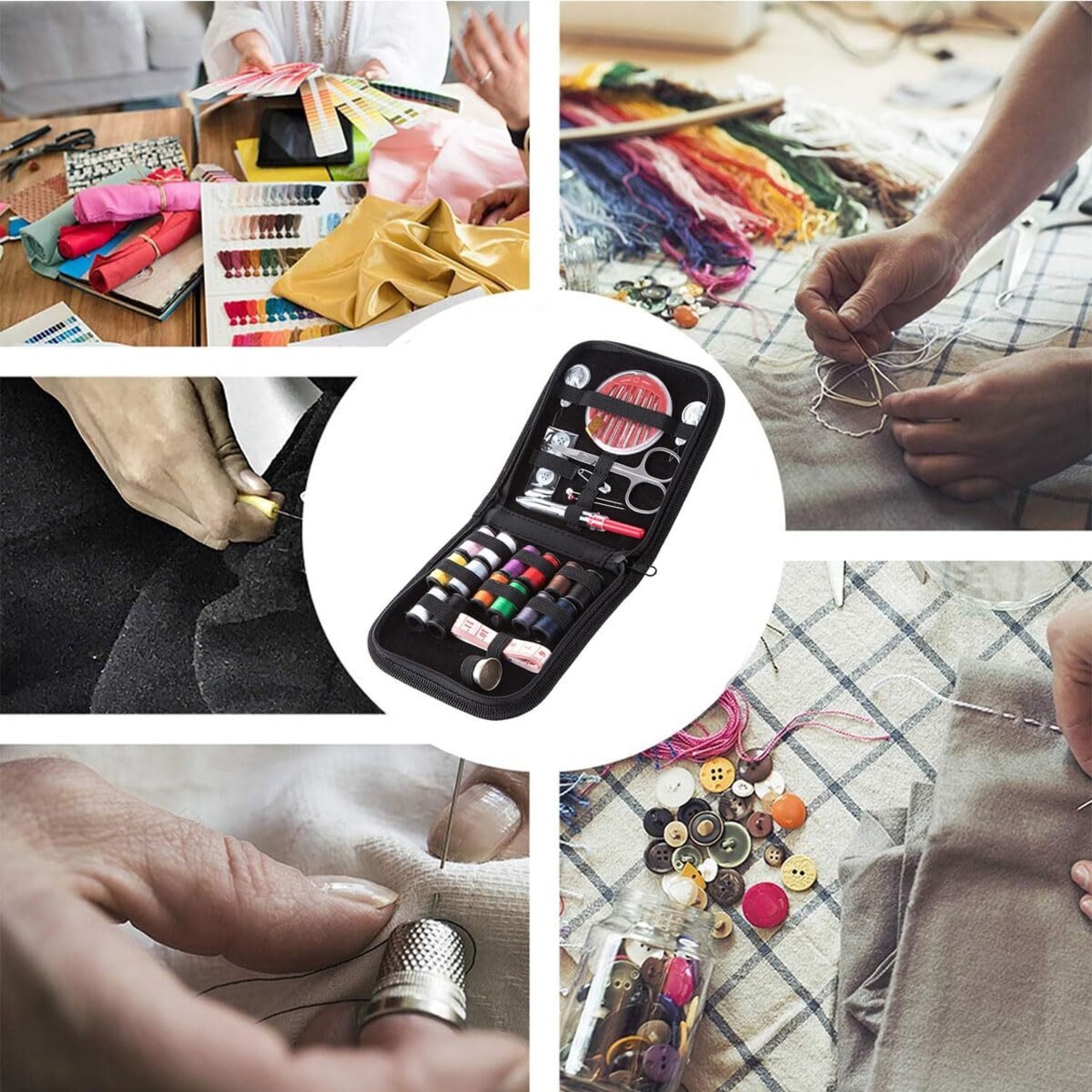 【新着商品】サムコス 裁縫セット ソーイングセット 14色糸 携帯式 刺繍 手芸 家庭用 裁縫道具セット 裁縫練習 衣類補修 家庭用 旅行用 初心者 男女兼用 (ブラック収納バッグ付き) | allstore3
