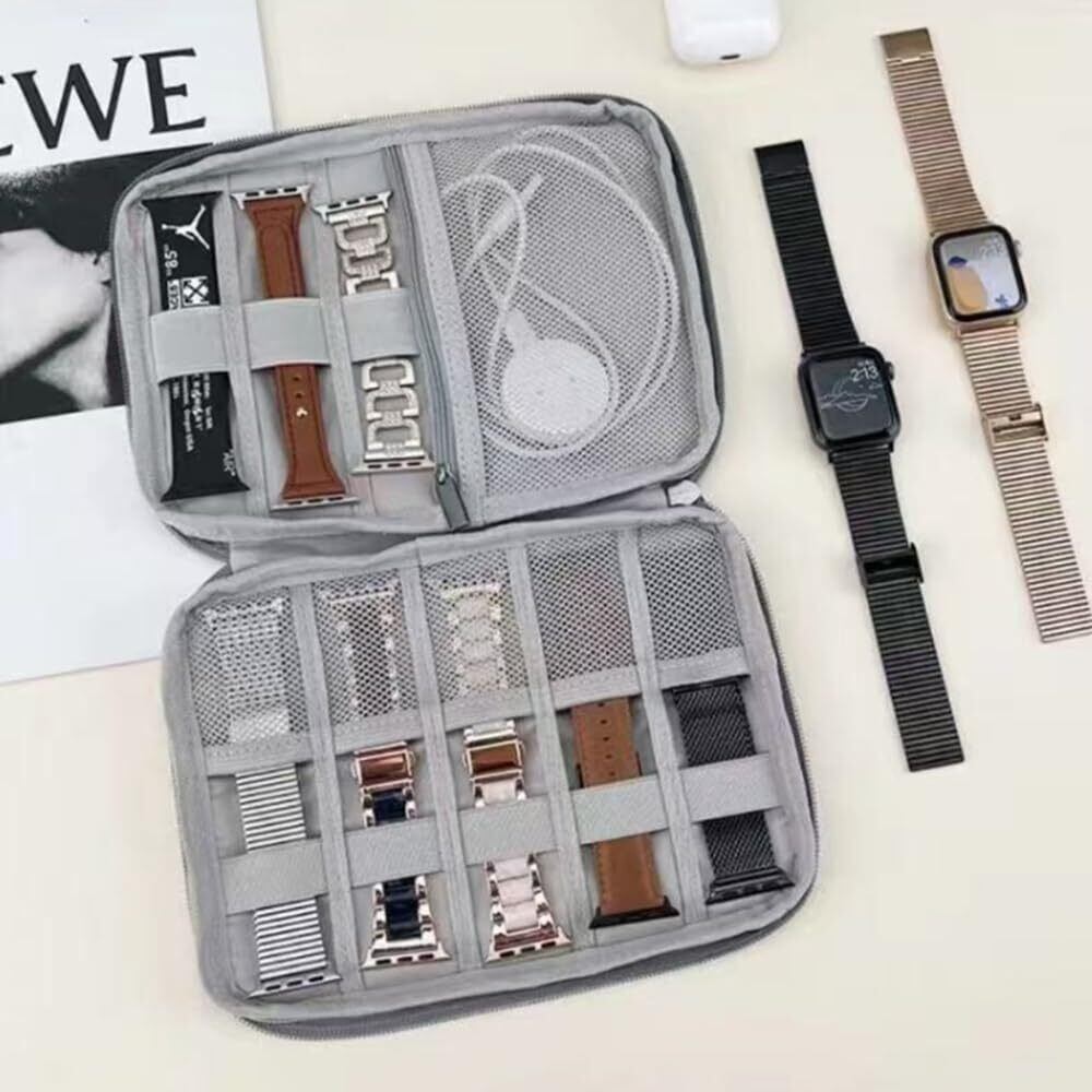 【便利性】時計収納バッグ、スマートウォッチストラップを組み合わせた整然とした箱に入れて、旅行や出張の際に折りたたんで持ち運びすることができます。