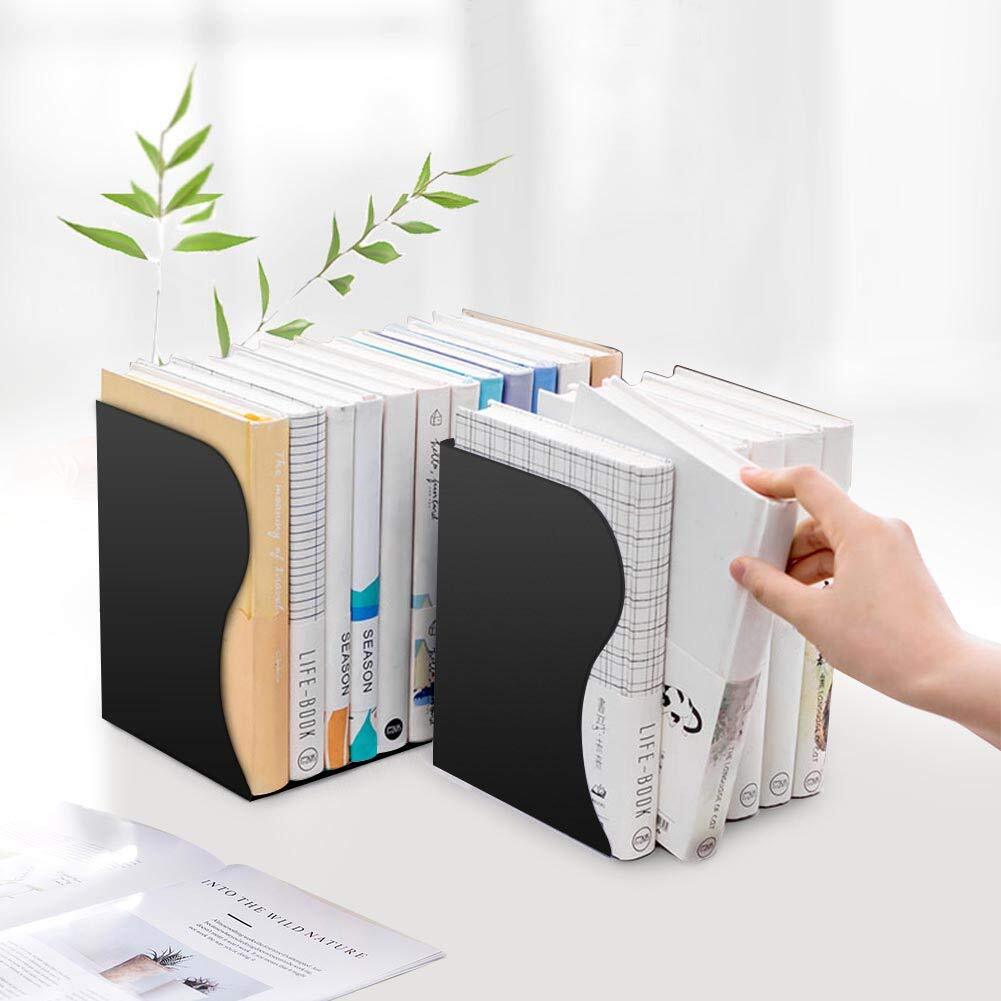 【新着商品】ブックスタンド 2個入り 本立て 伸縮自在 卓上収納 倒れない ブックエンド 金属製 仕切りスタンド デスク整理 (2個-黒)