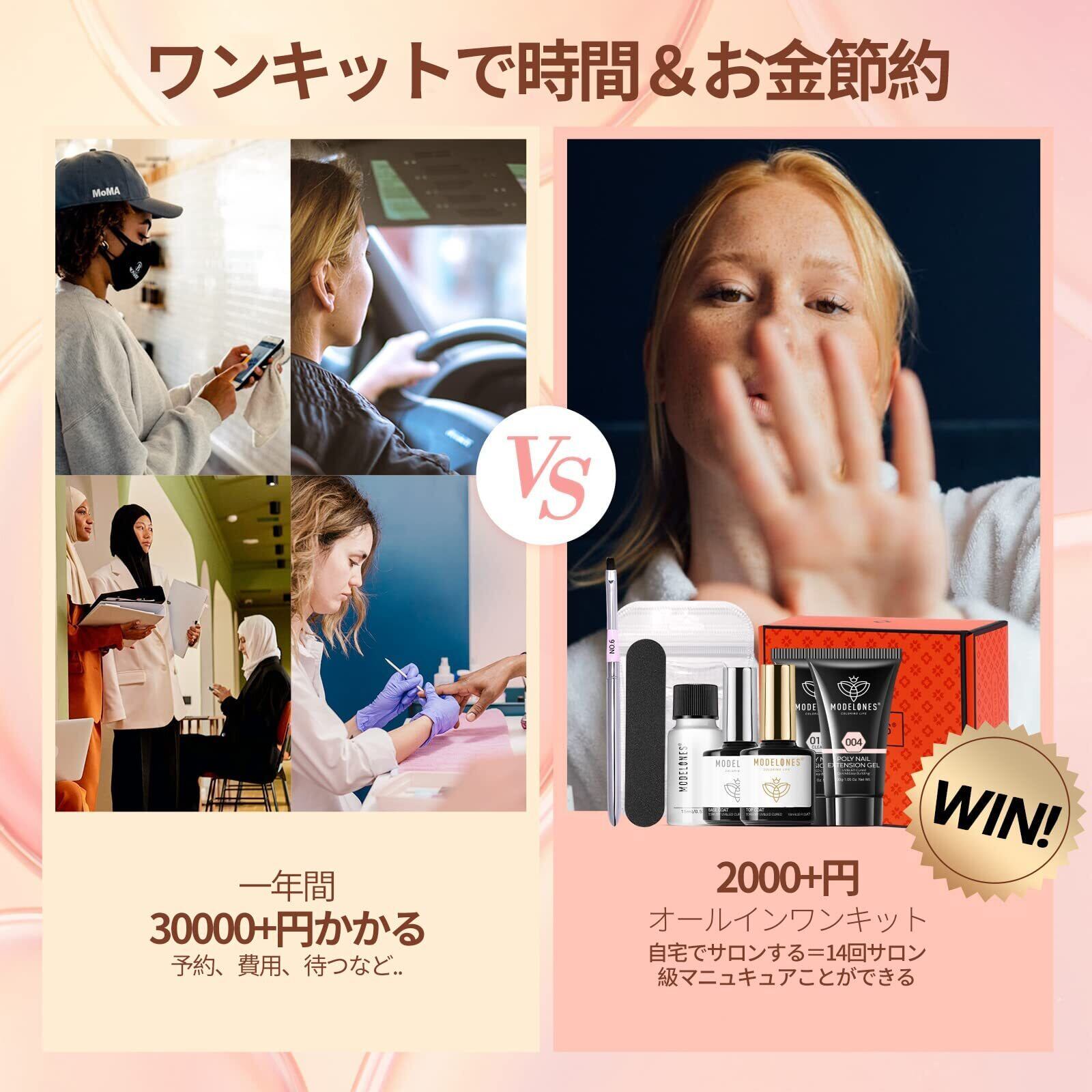 【2022最新】Modelones ジェルネイル ポリネイルジェル カラージェル 長さだし エクステンションジェル スカルプネイル付きセット オールインワンキット (ヌード15g+クリア15g)