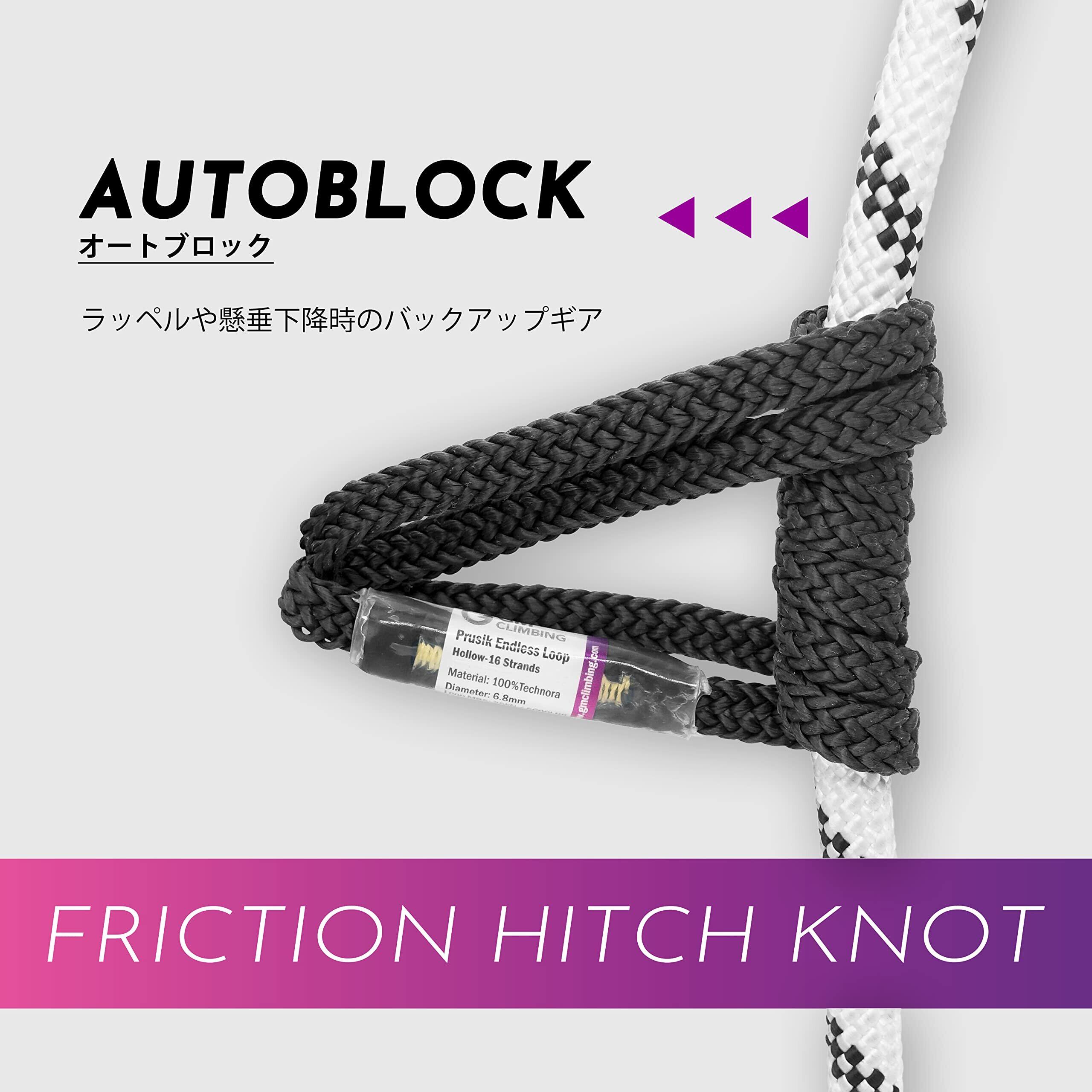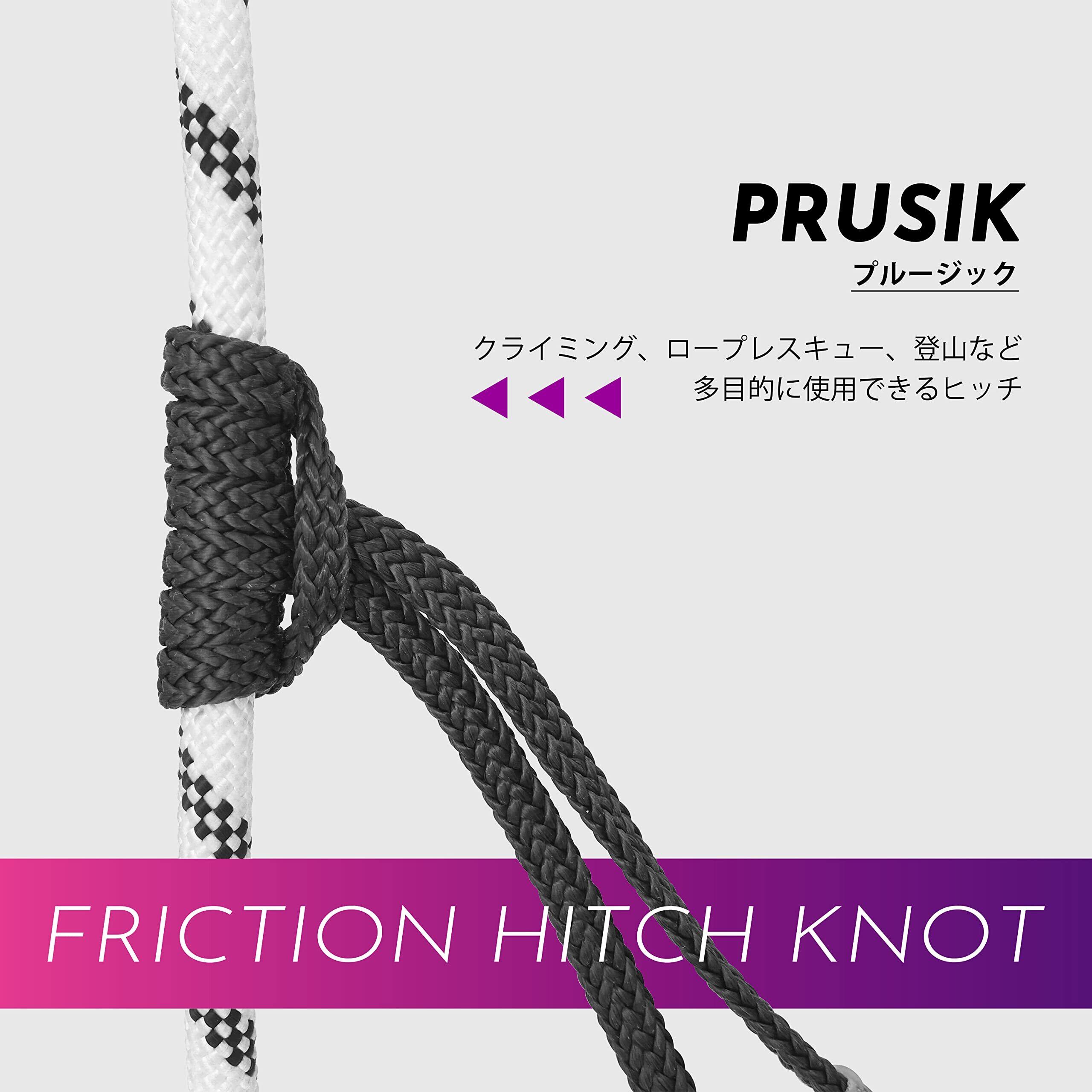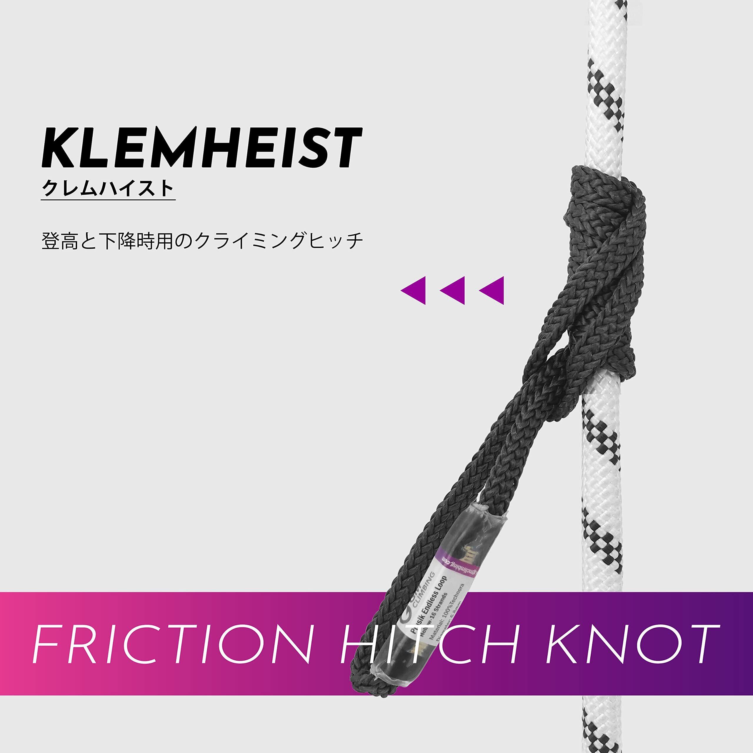 各種ノットやヒッチ◆◆38.5cmの長さはハーネスループ部分と取り付けるのに適します。プルージックノット、オートブロック、クレムハイストノットなどのノットを結び、バックアップラッペル、クライミング、懸垂下降、レスキュー、アーボリスト、ツリークライミング、エアリアルヨガやエアリアルハンモック、3倍力のプーリーシステムあるいはZドラッグシステム、などアウトドアアクティビティに幅広く使用できます。