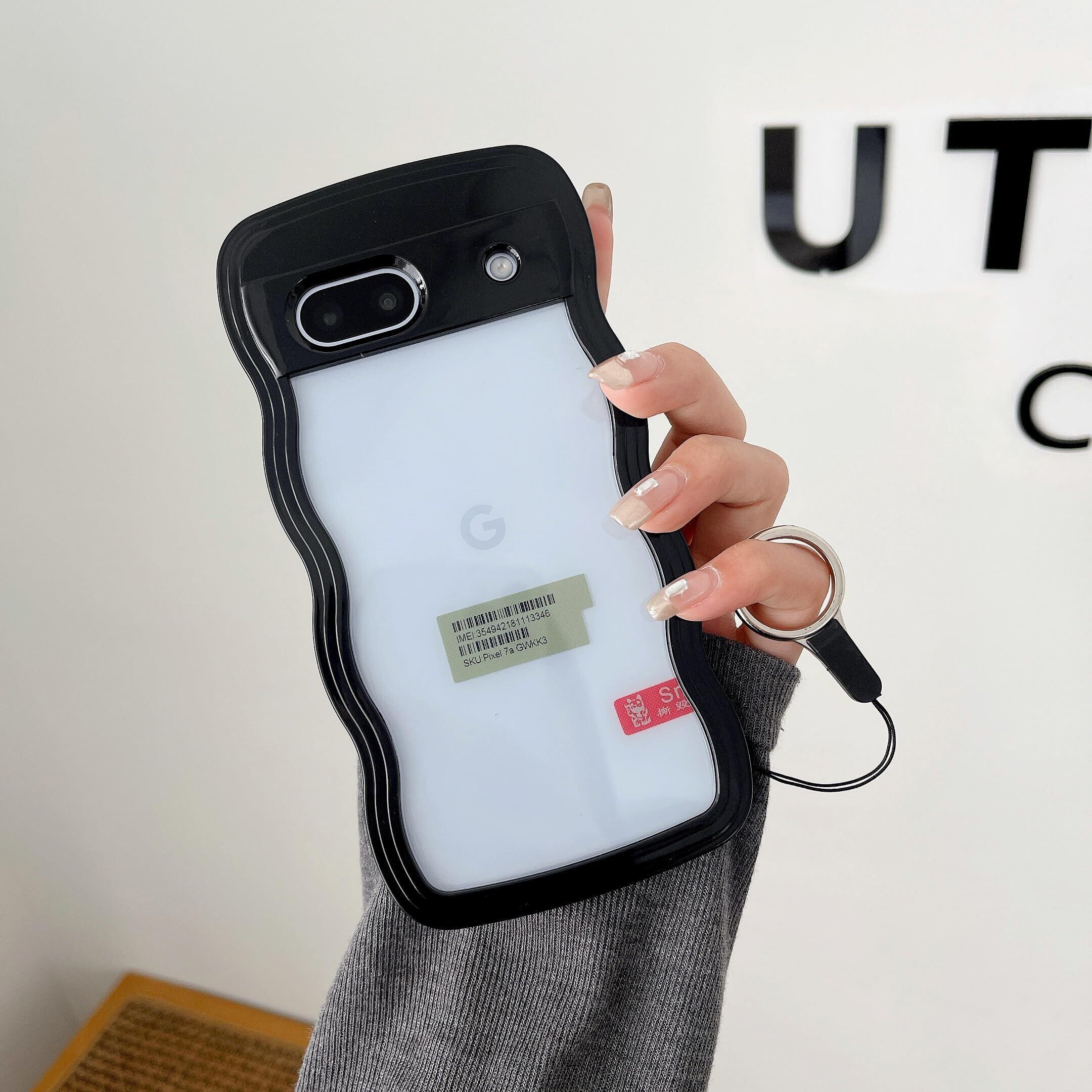Google Pixel 8A かわいい ケース 波状フレーム うねうねグーグル ピクセル8A 6.1インチ用滑り止め スマホケースウェーブ デザイン 手にフィット スマホカバー 韓国 可愛い 女性用 女子向け クリア TPUカバー 波状エッジ ソフトシェル一体型 ケース 人気 落下防止 耐衝撃 全面保護 ワイヤレス充電対応(Google Pixel 8A-ブラック)
