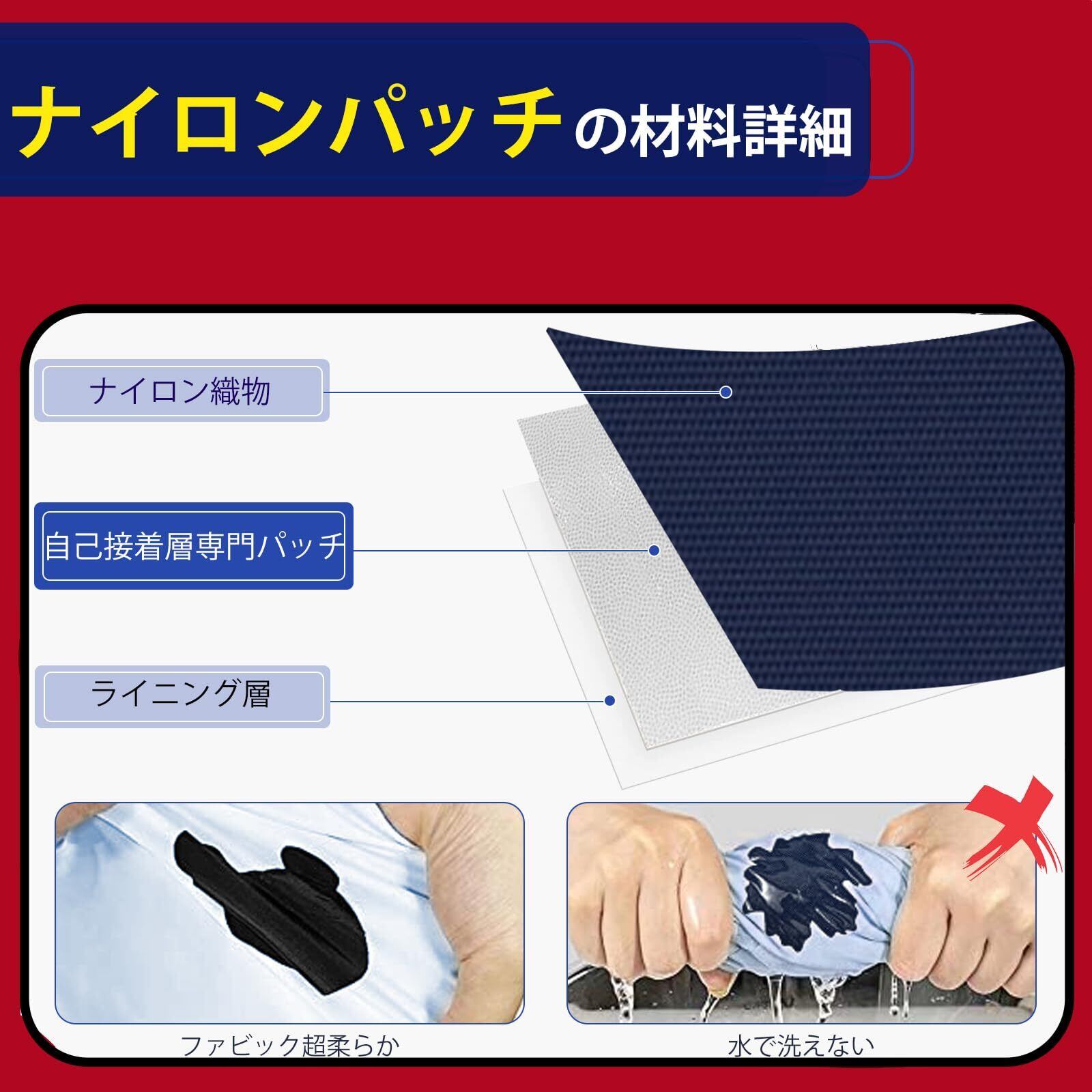 【補修方法】:この補修シートならナイロンの裏が接着シールなので剥離紙をはがして貼るだけ簡単に補修 ご使用の際、補修する箇所より少し大きめに補修シートをカットします。粘着面をクリニングしてから粘着してください。商品の粘着部分にホコリはありません。粘着面にシワができないように貼り付けて下さい。貼り付けた後補修シートの表面から手でしっかり圧着してください。