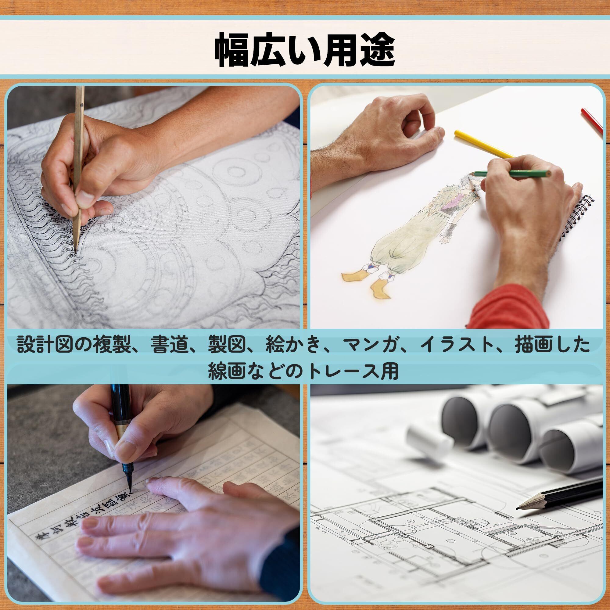「重ね合わせやすい、正確に描写ことができる」トレーシングペーパーは元の図面に簡単に重ね合わせことができ、元の図面や文字の細部を正確に複製することができます