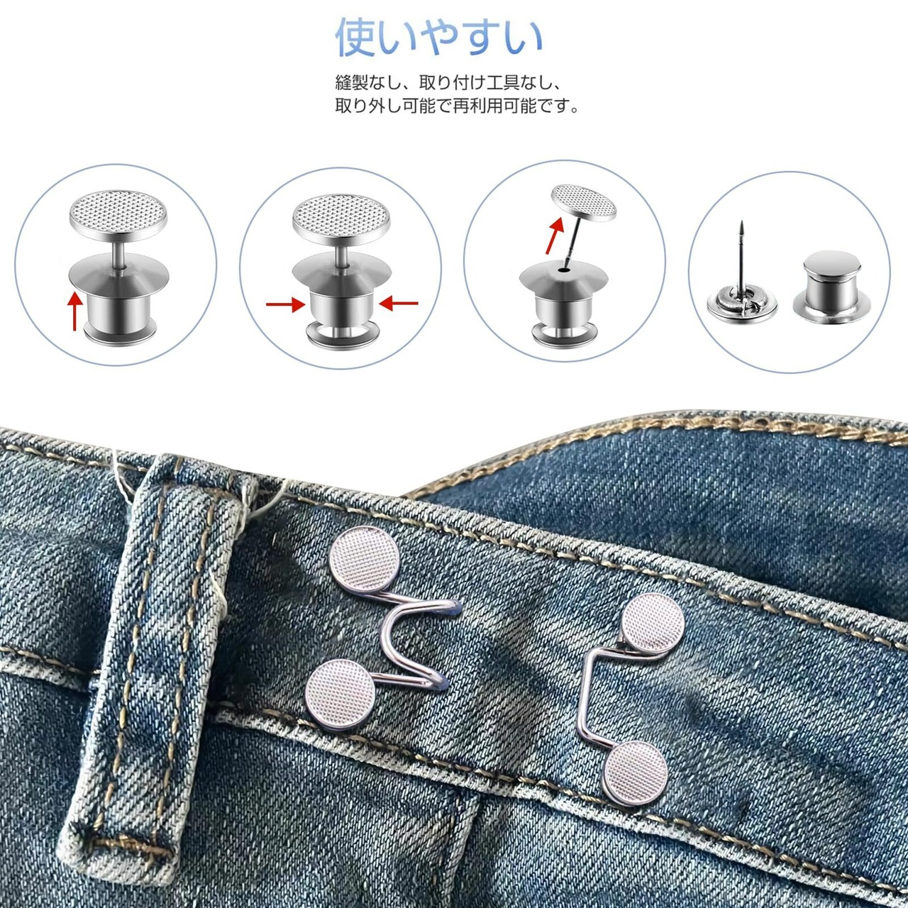 ジーンズ 調整ボタン:調整ボタンを使用することでより簡単に調整が可能です。セットには3つの調整ボタンが含まれており、シルバーの色合いがおしゃれな印象を与えます。