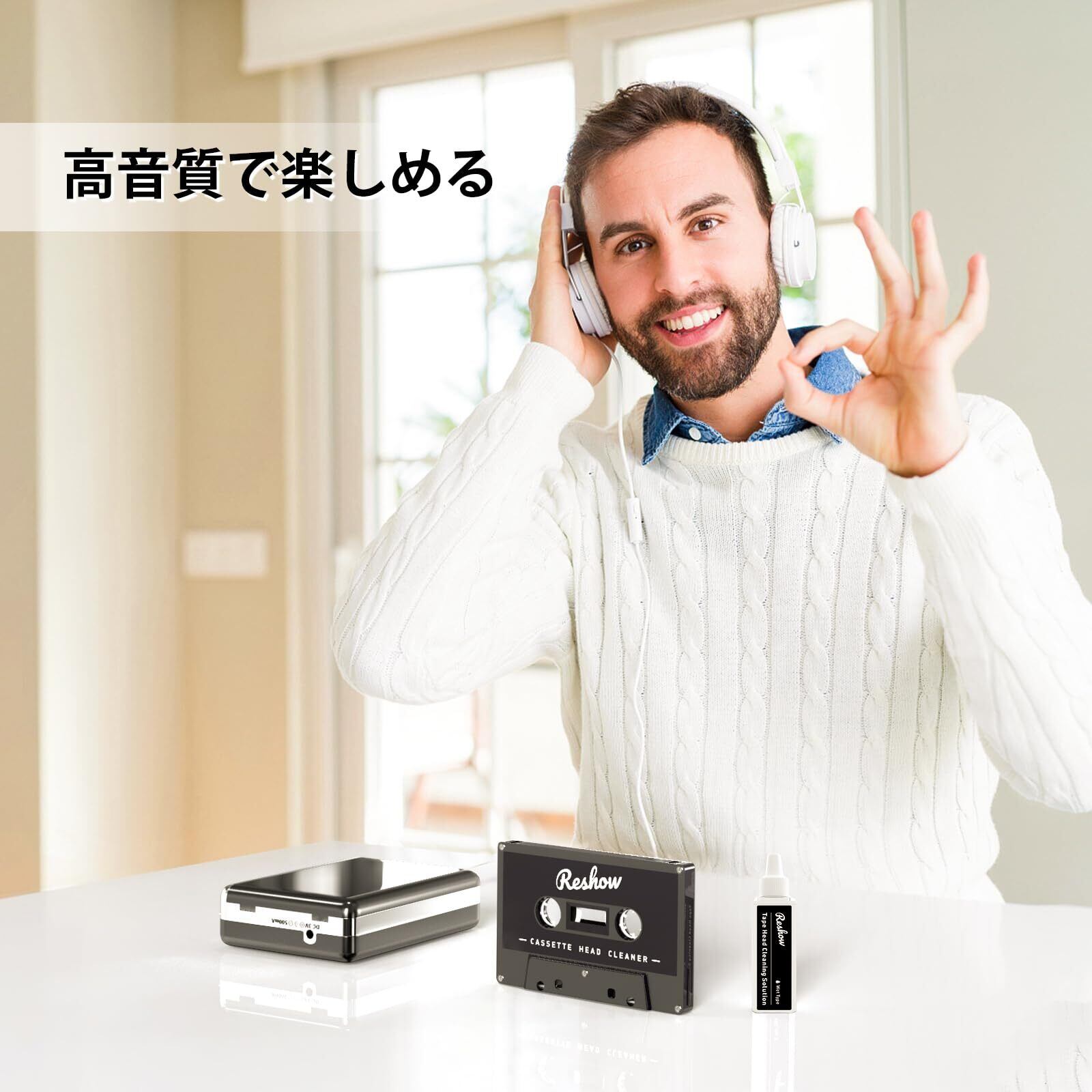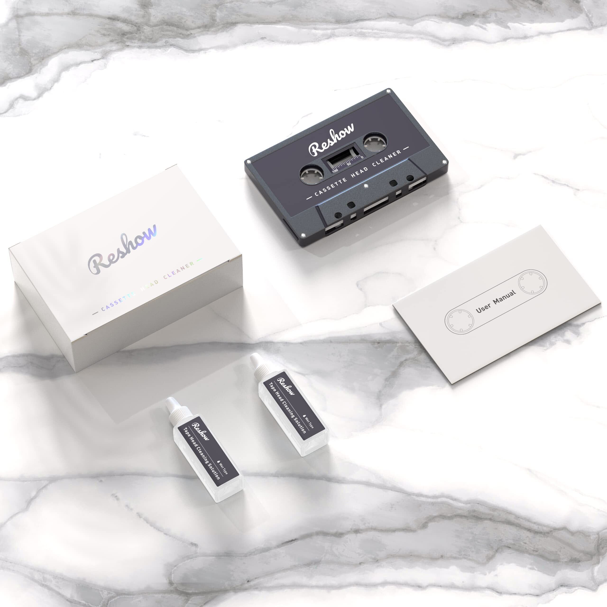 Reshow カセットテープ クリーナー2種の液体を含む湿式ケアセット、ボックス型レコーダー/スピーカー/ディスク/レコーダー/テープに適用可能
