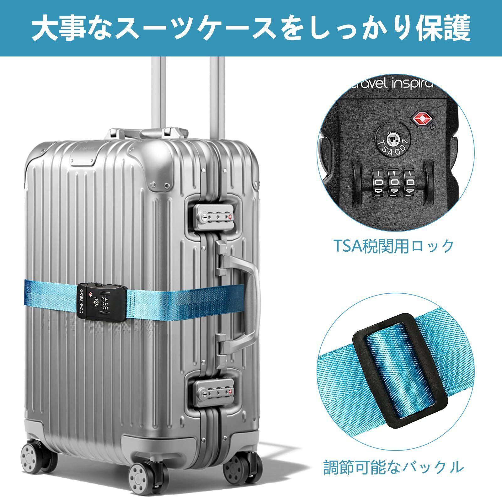 【2022最新】travel inspira 【TSAロック】スーツケースベルト 旅行 便利グッズ 荷締めベルト バンド 荷崩れ防止・調整可能 I字型 十字型 軽量 3桁ダイヤル式 固定ベルト ずり落ち防止 旅行/出張に最適 (I字型, ブルー)