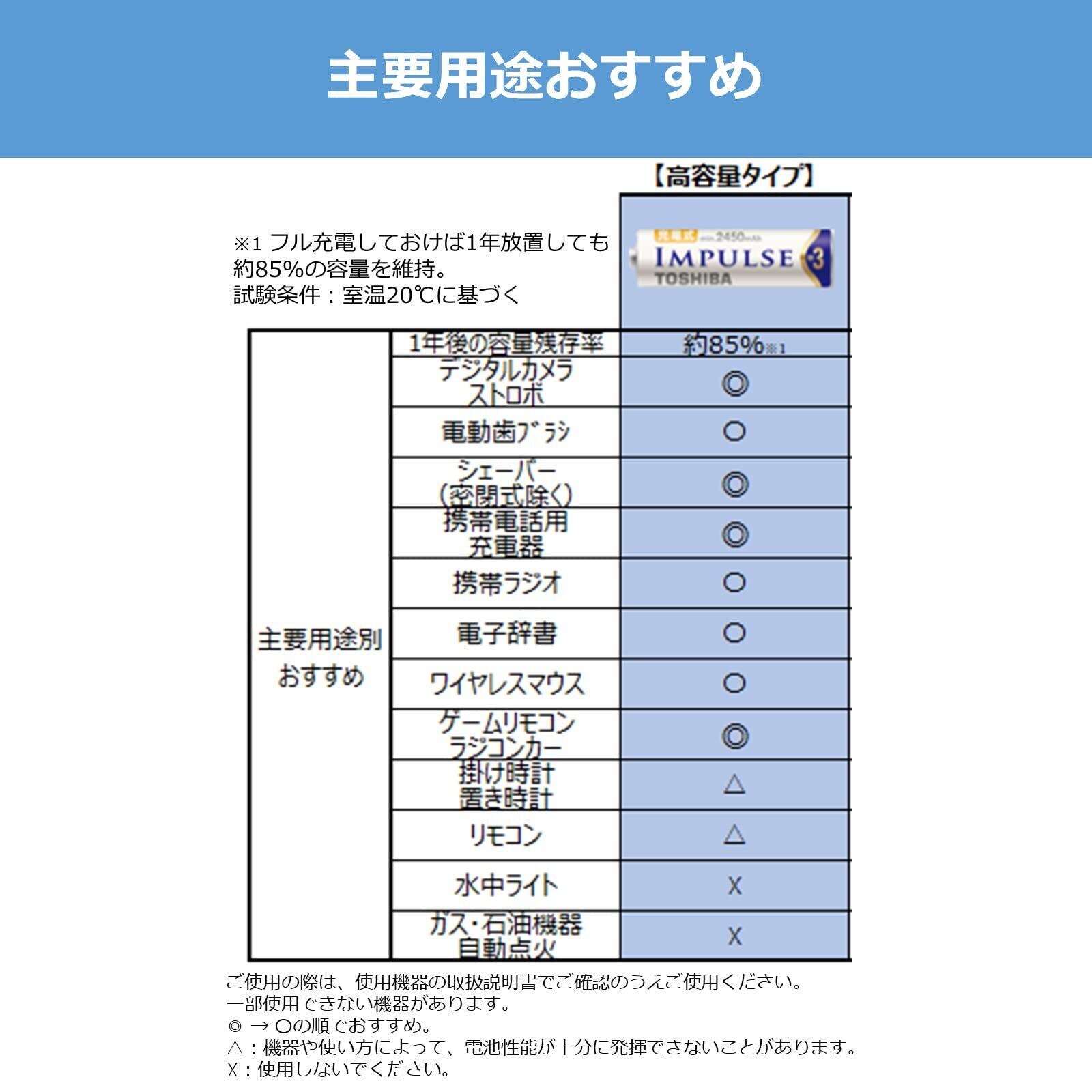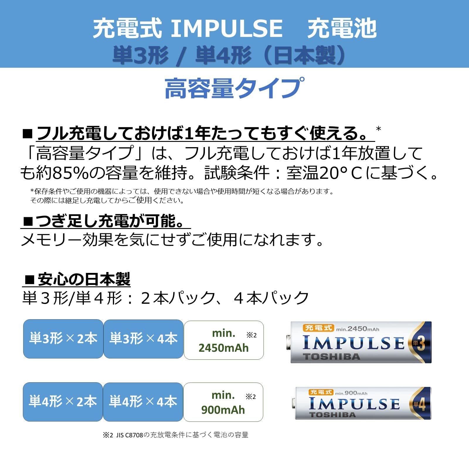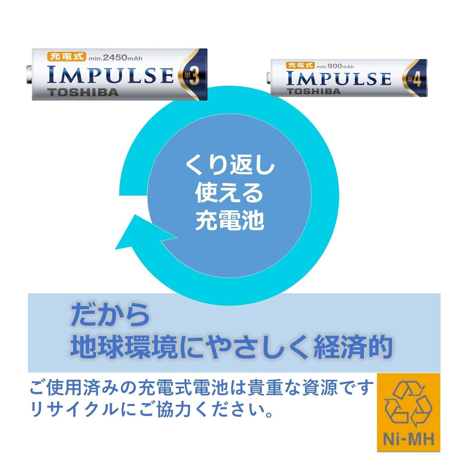 TOSHIBA ニッケル水素電池 充電式IMPULSE 高容量タイプ 単3形充電池(min.2,450mAh) 4本 TNH-3AH4P